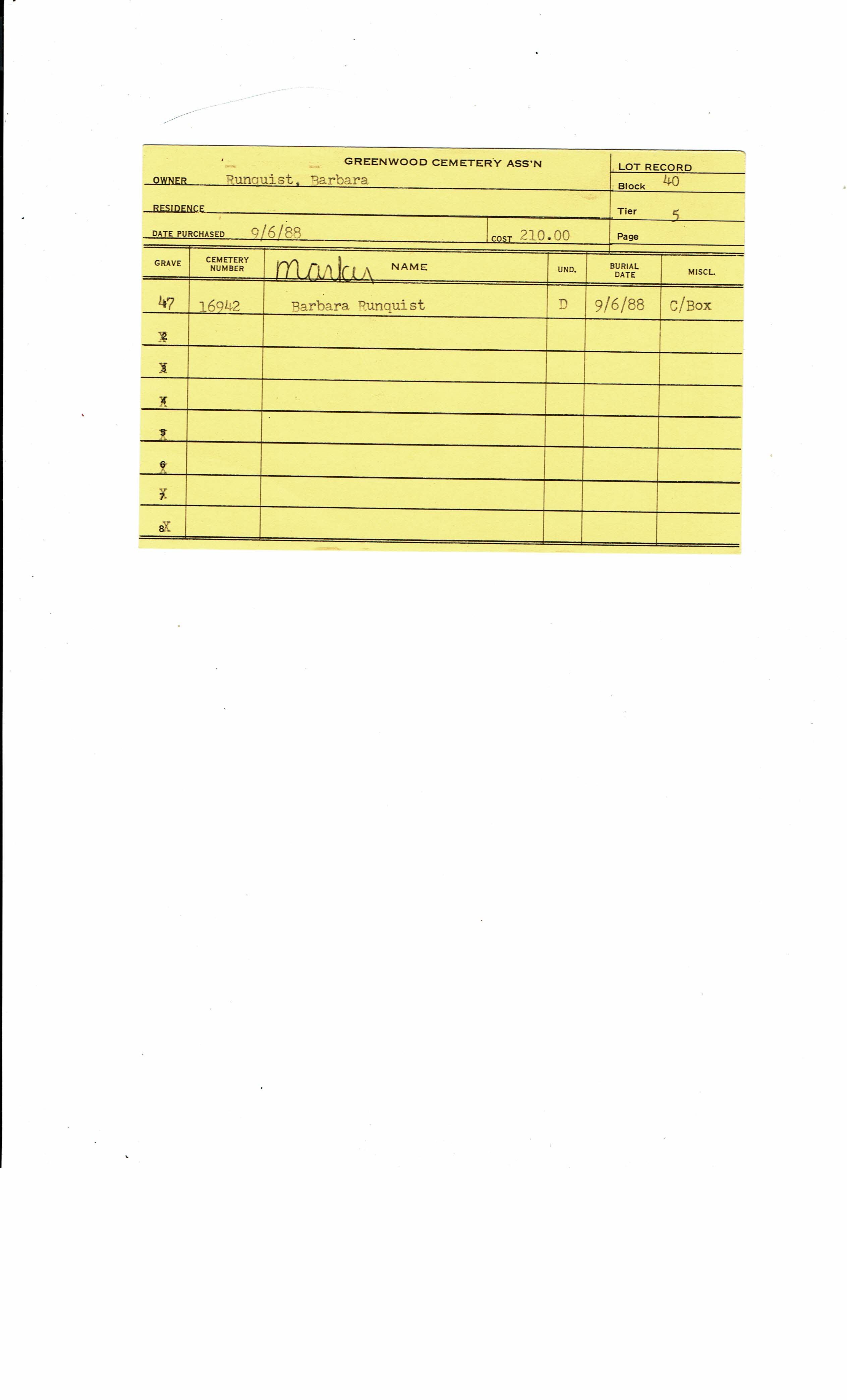 Buried Sep 6, 1988