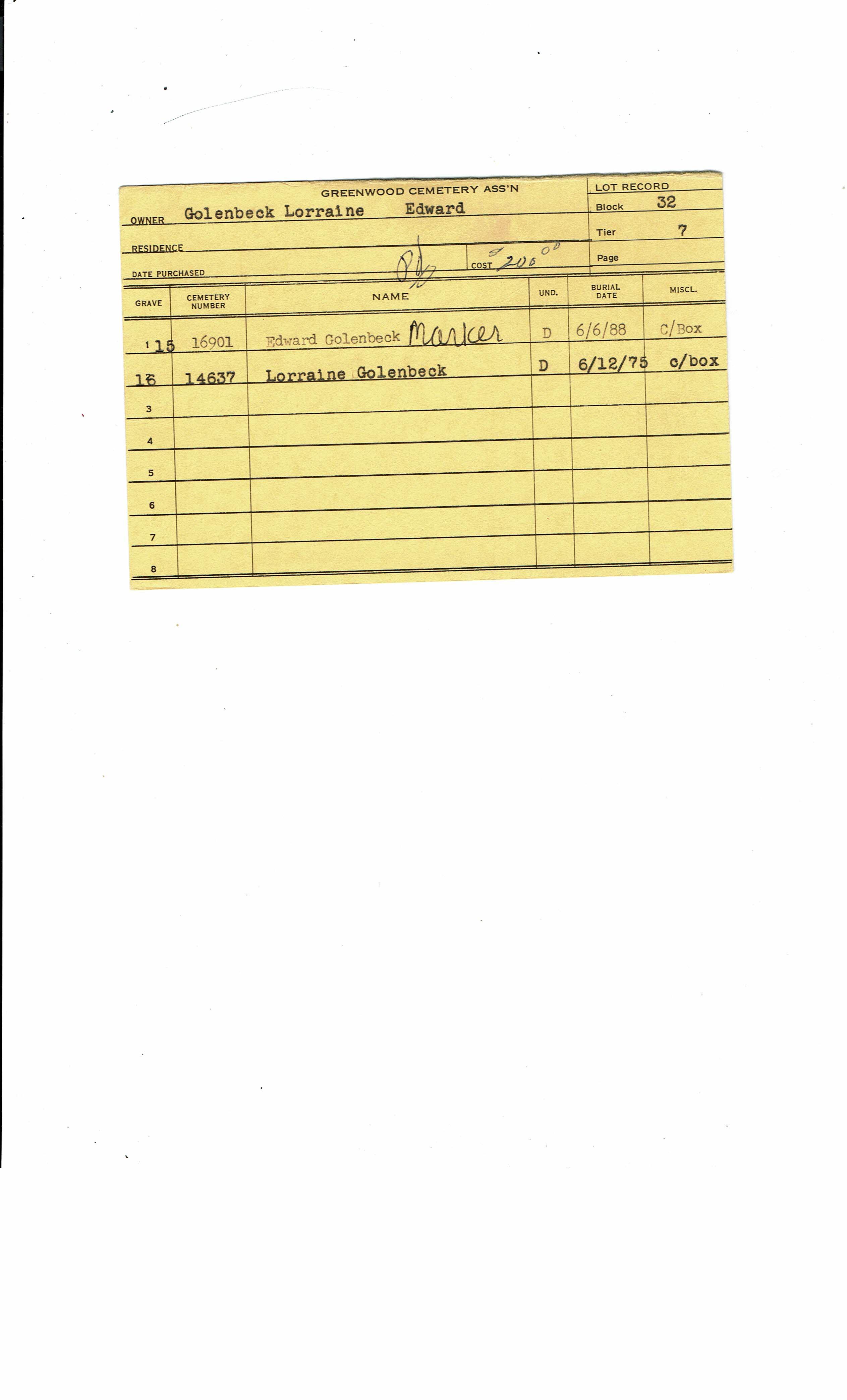 Greenwood Cemetery Association Online Records