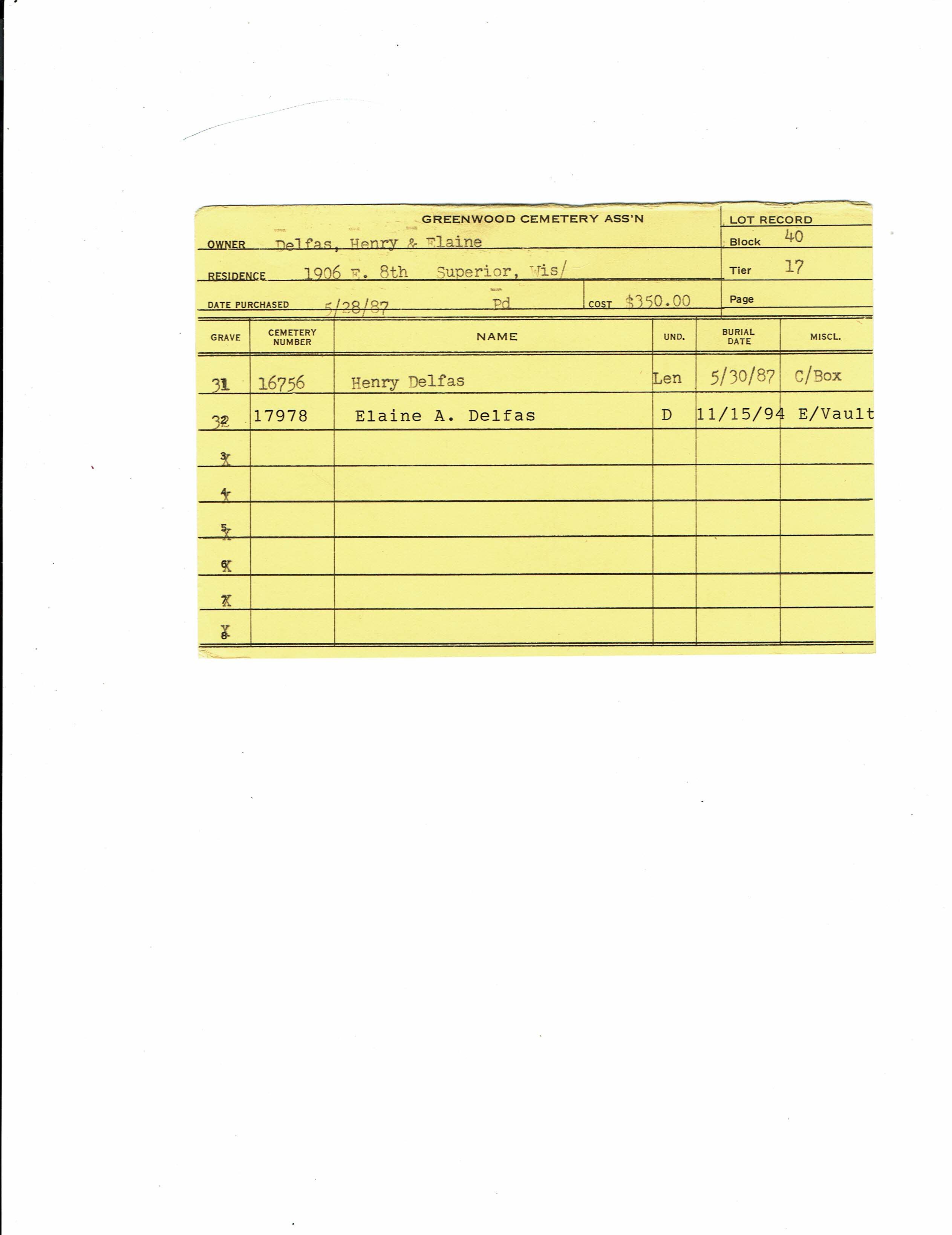 Greenwood Cemetery Association Online Records