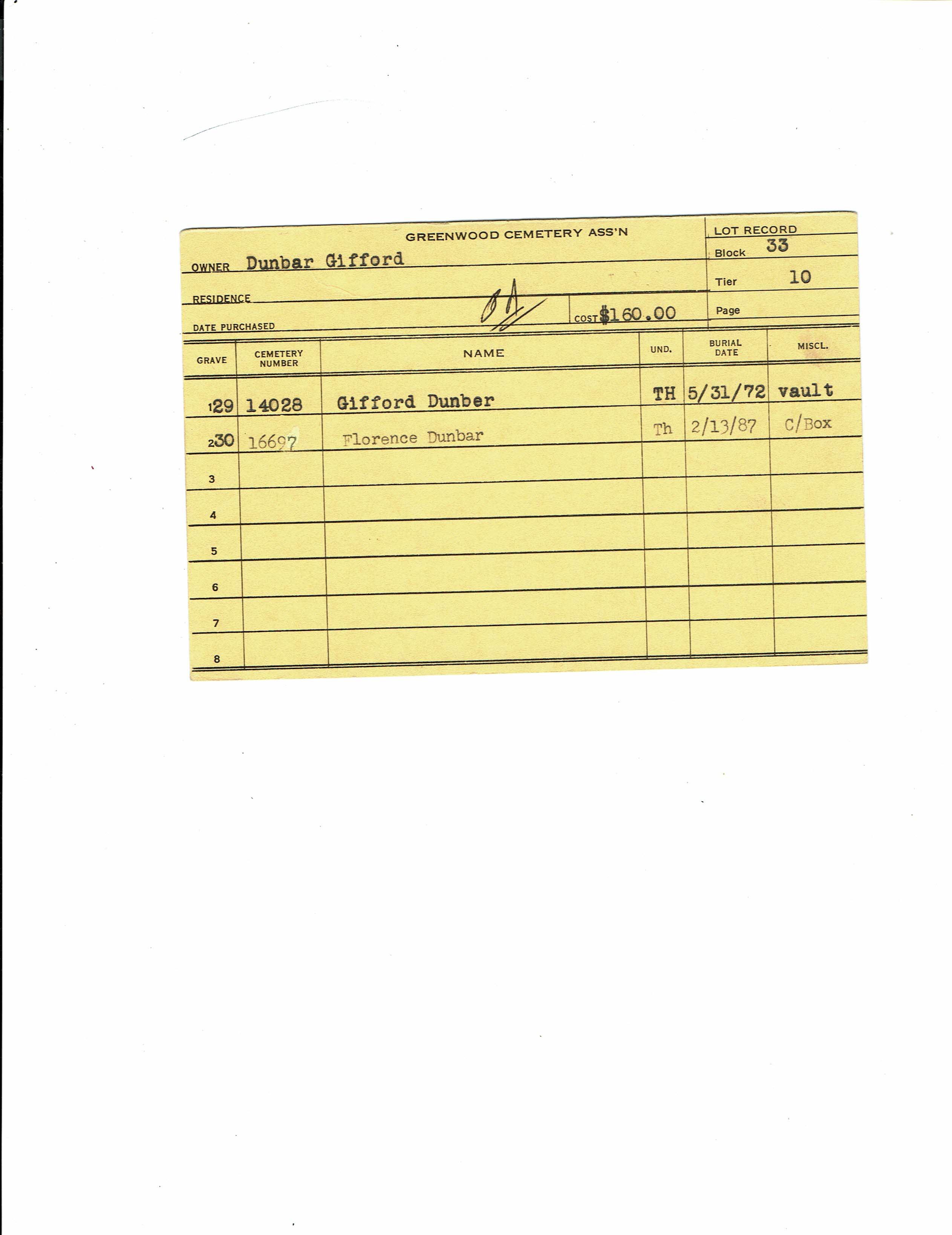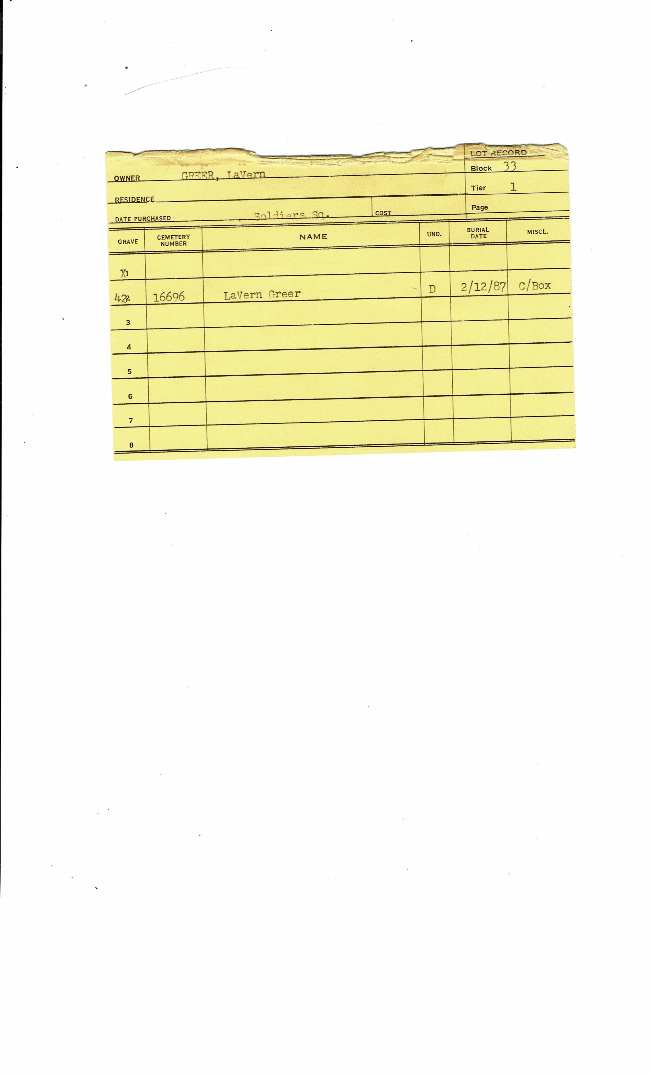 Block 33, Tier 01, Lot 1, Grave 43