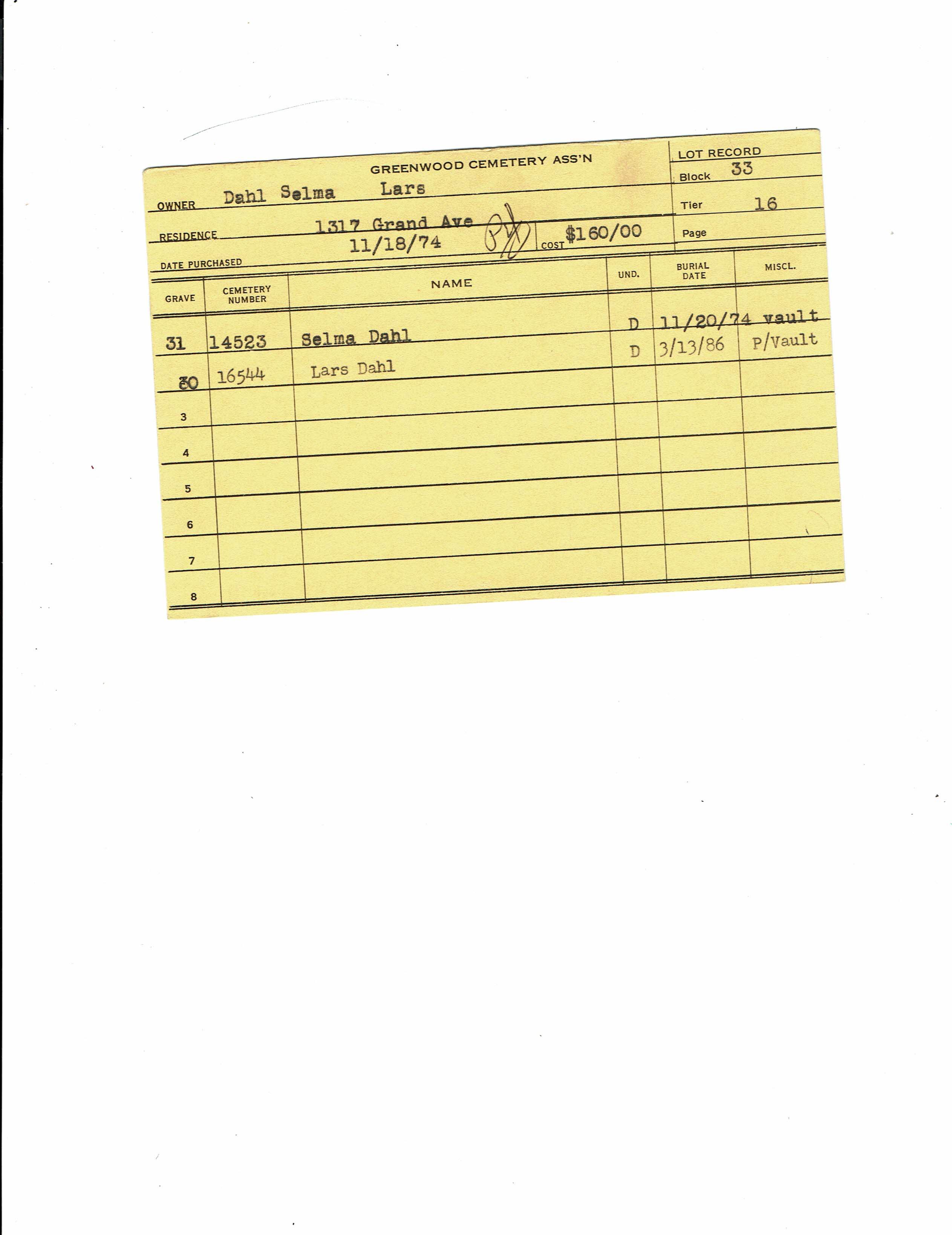 Block 33, Lot 16, Grave 30