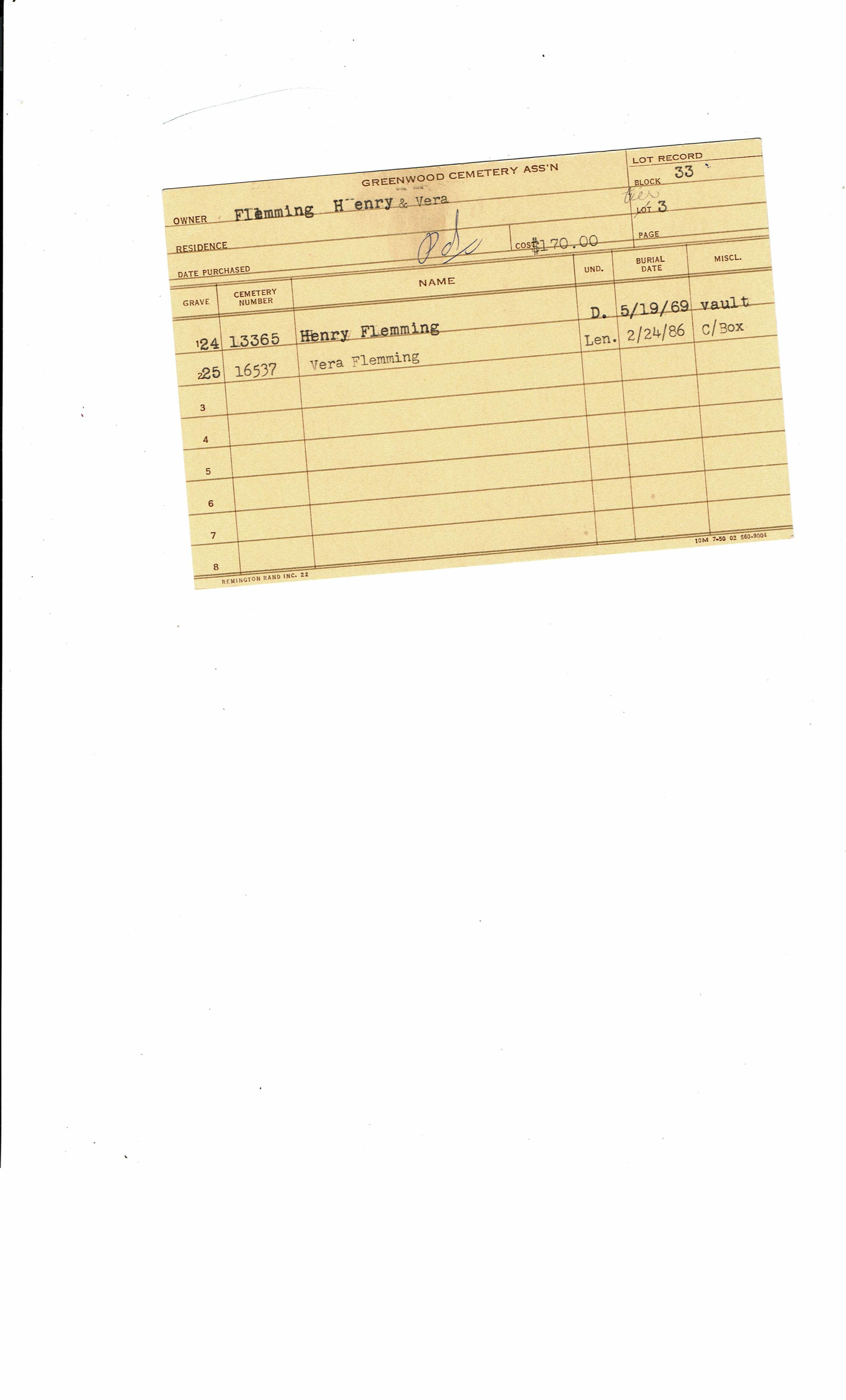 Block 33, Tier 12, Lot 1, Grave 26