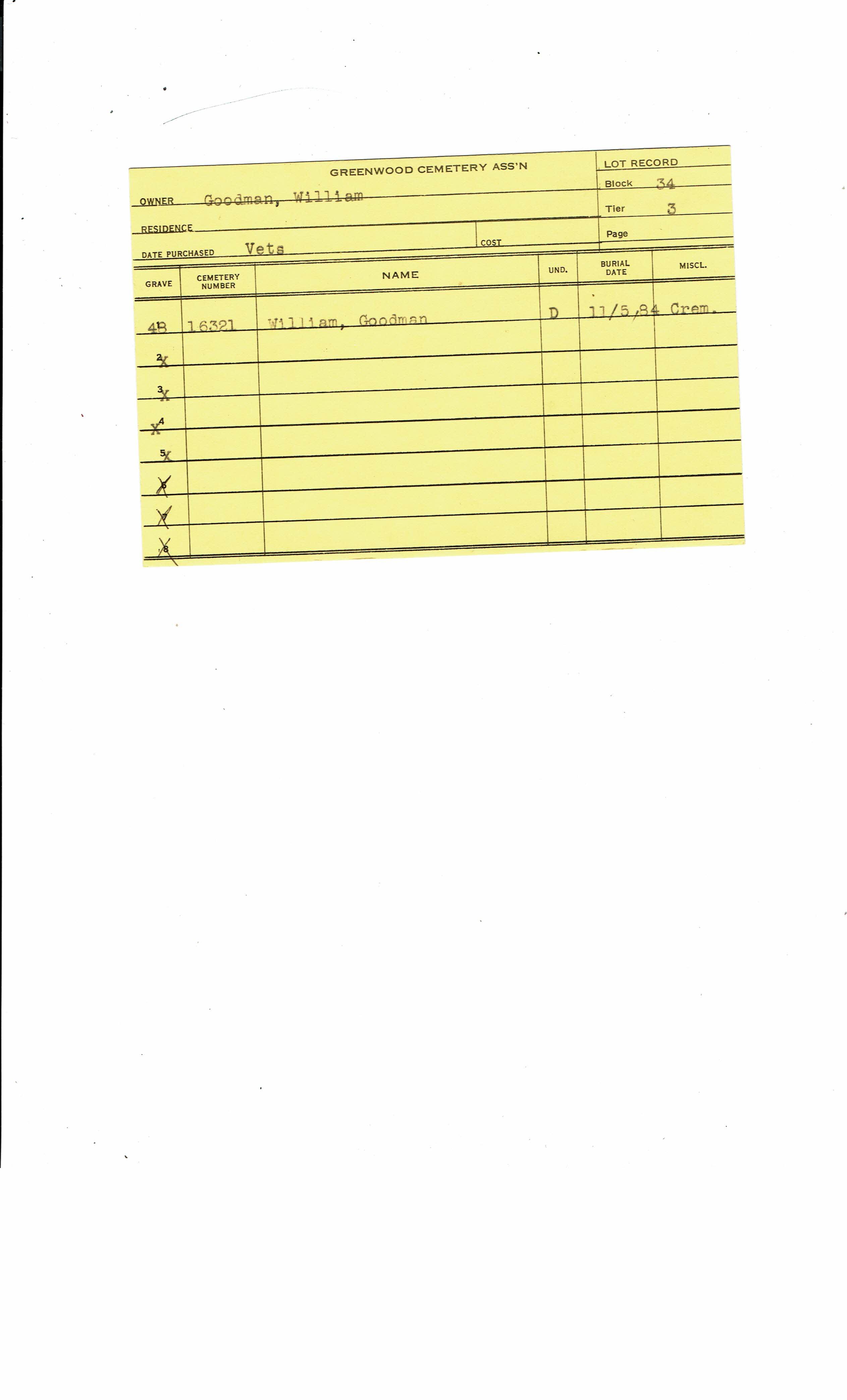 Block 33, Tier 01, Lot 1, Grave 12