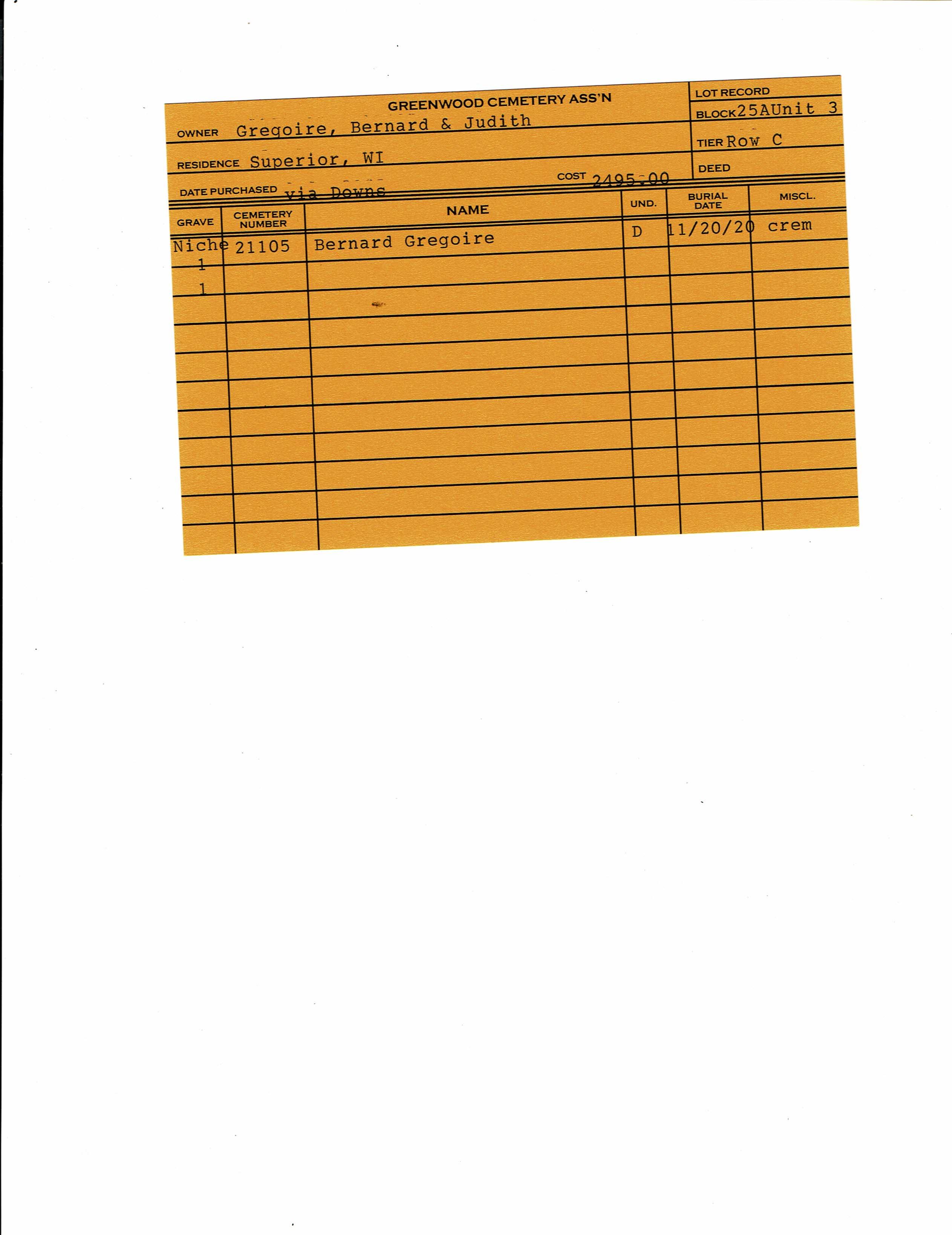 Block 25A, Tier Row C, Lot Unit 3, Grave Niche 1