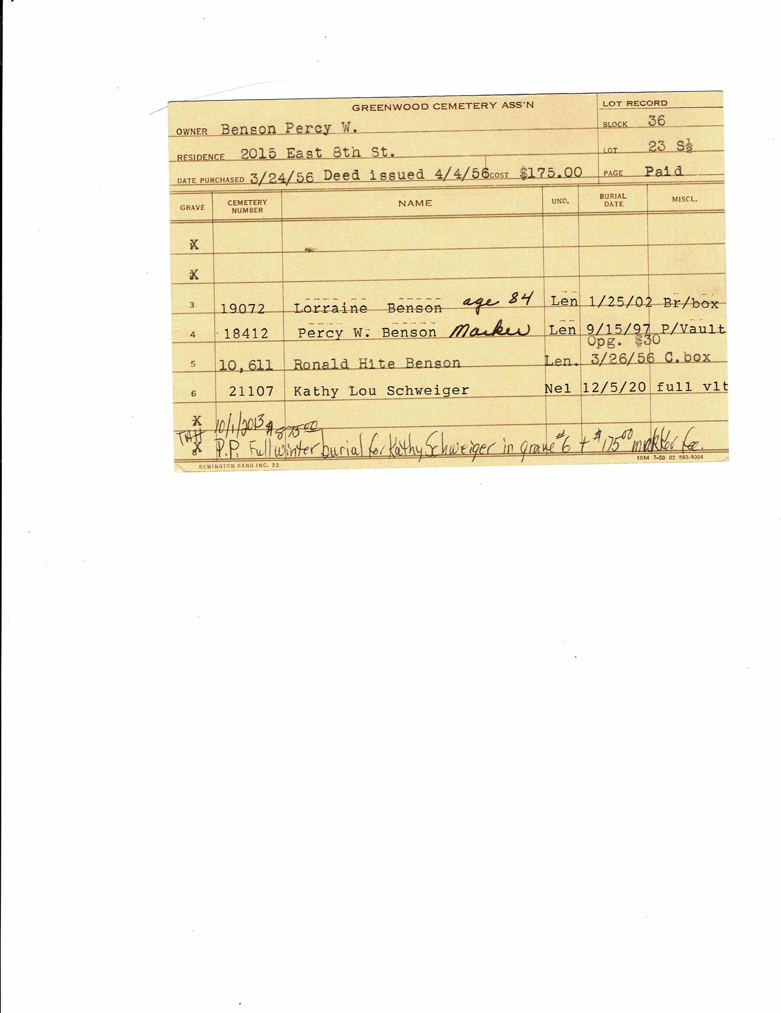 Block 36, Lot 23 S1/2, Grave 6