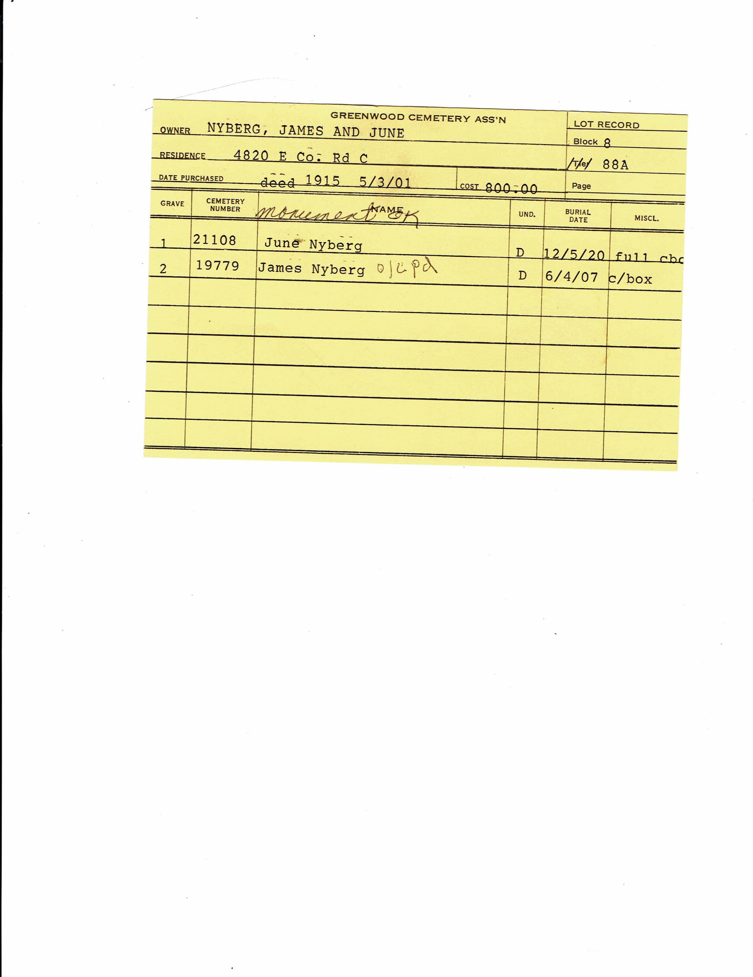 Block 8, Lot 88A, Grave 1