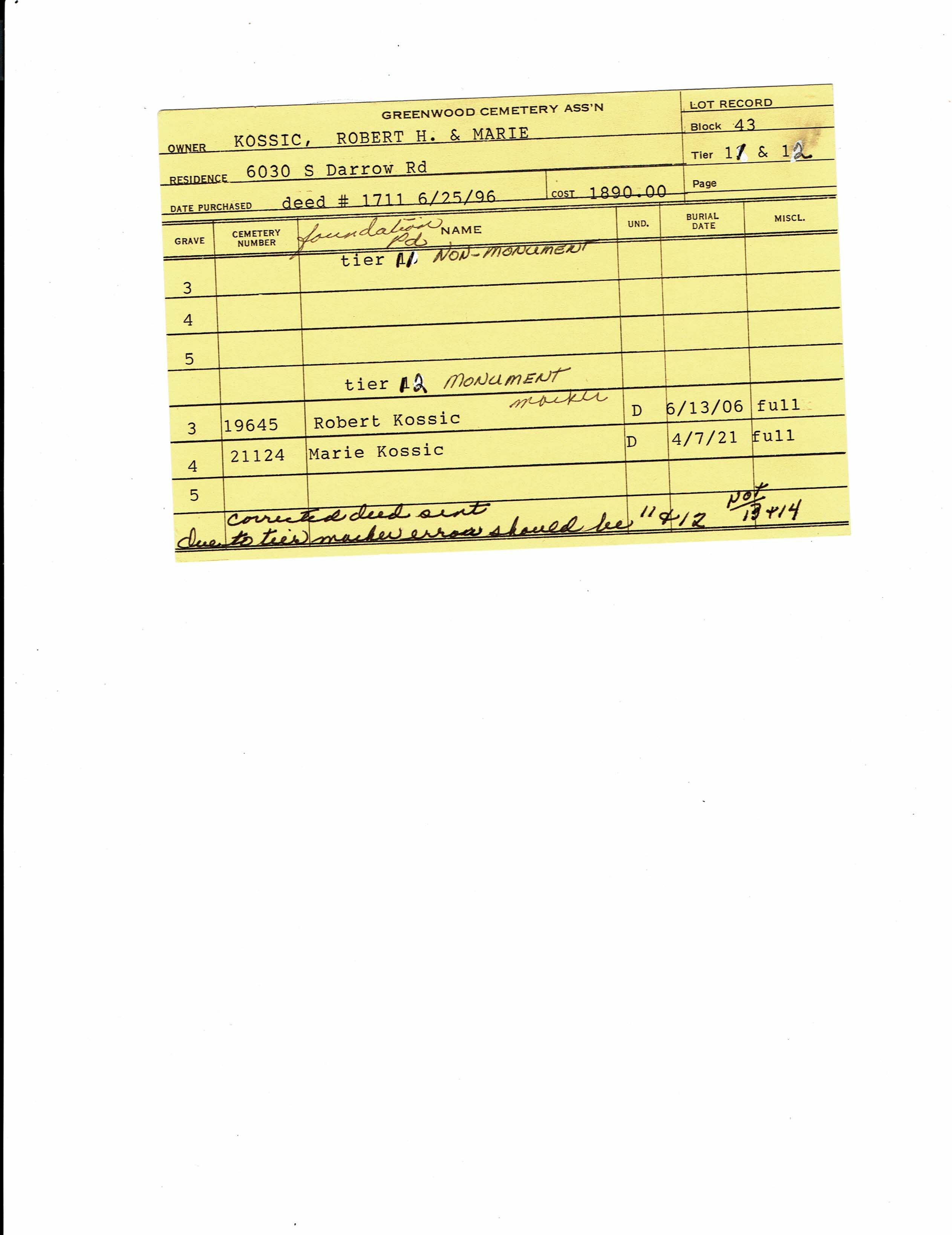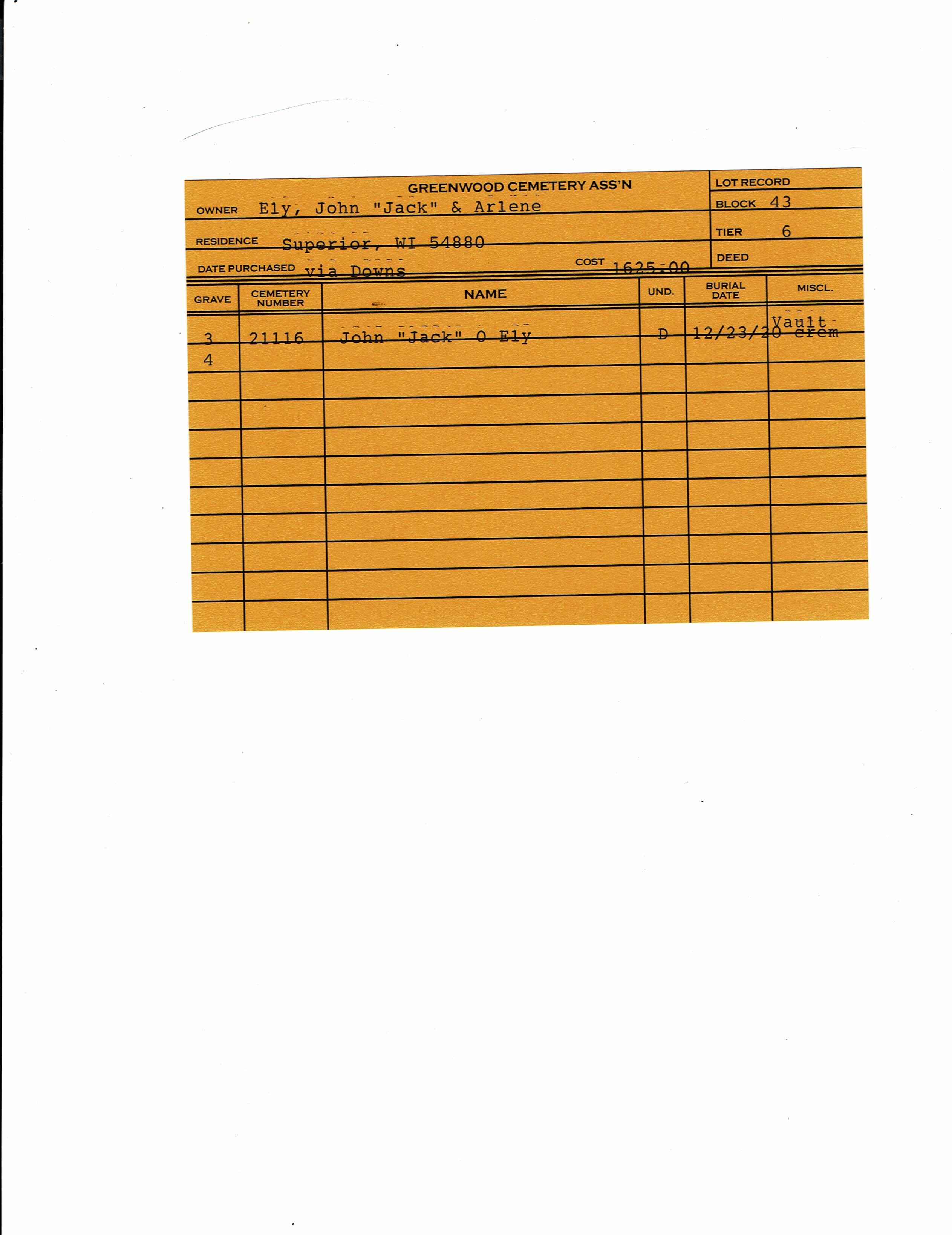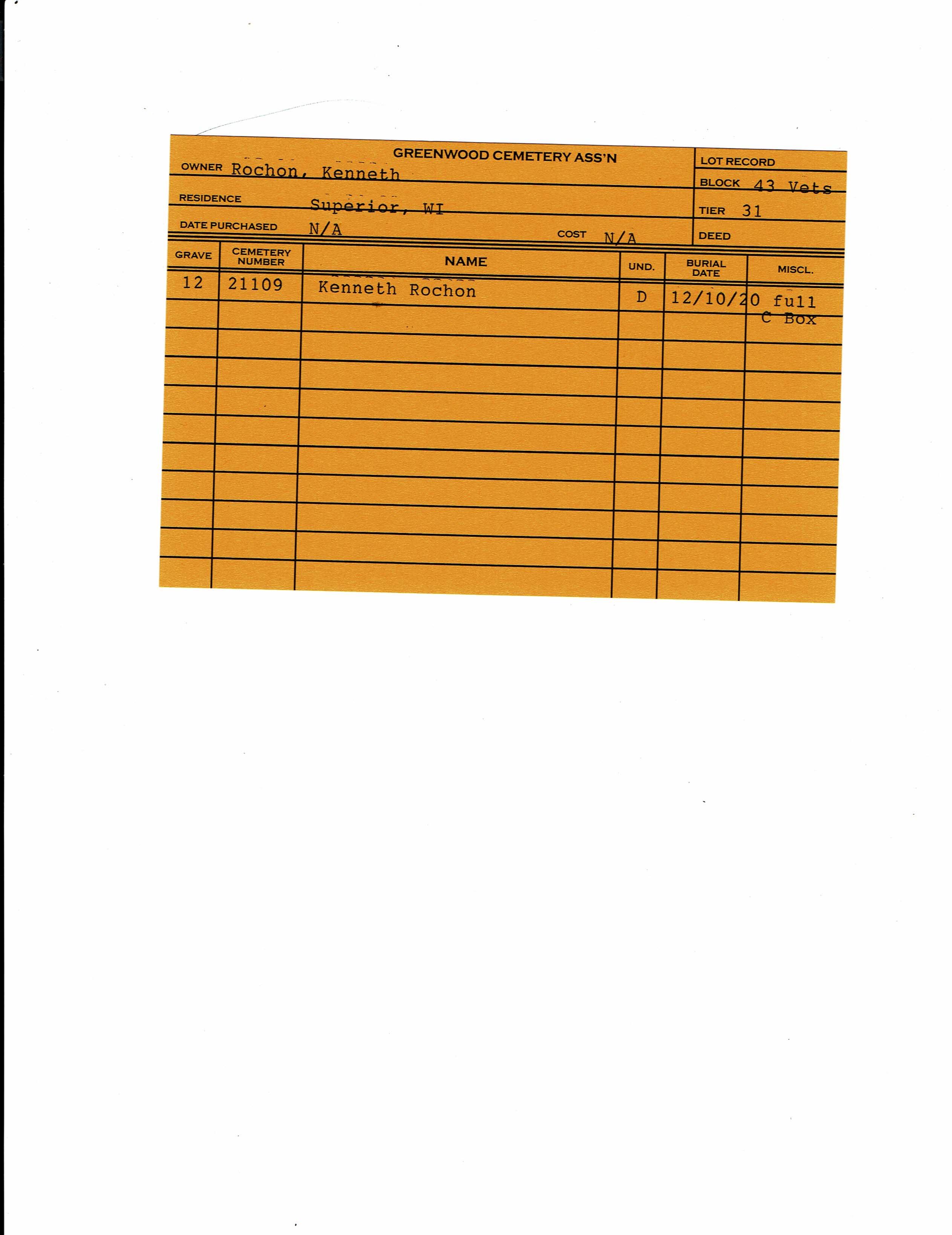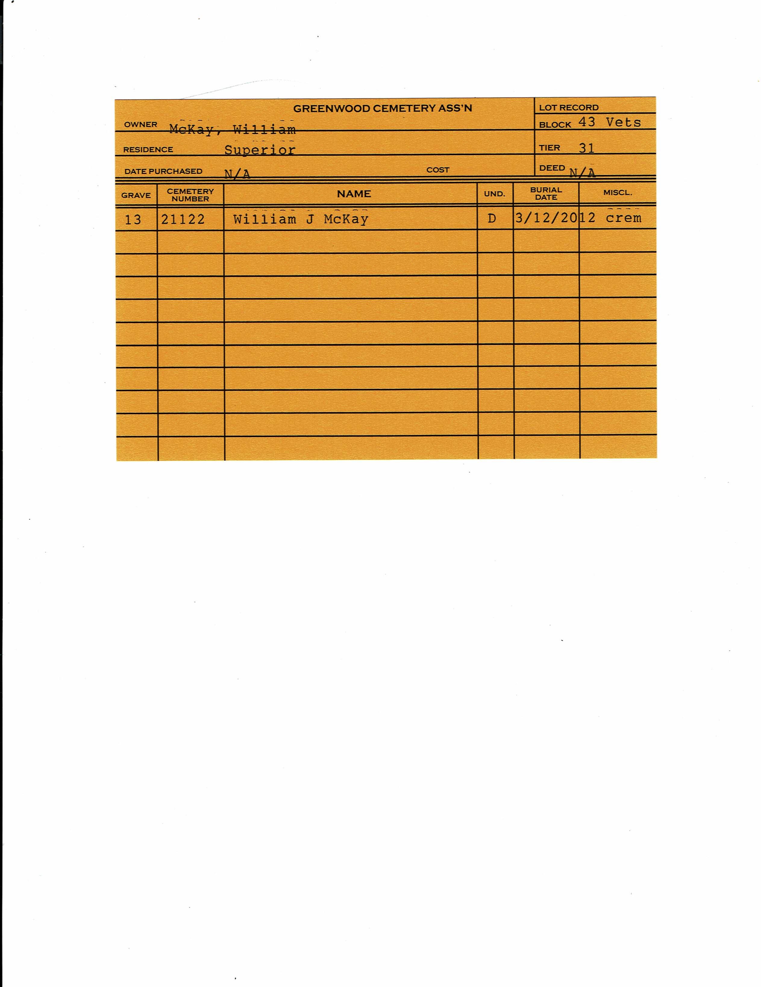 Block 43, Tier 31, Grave 12