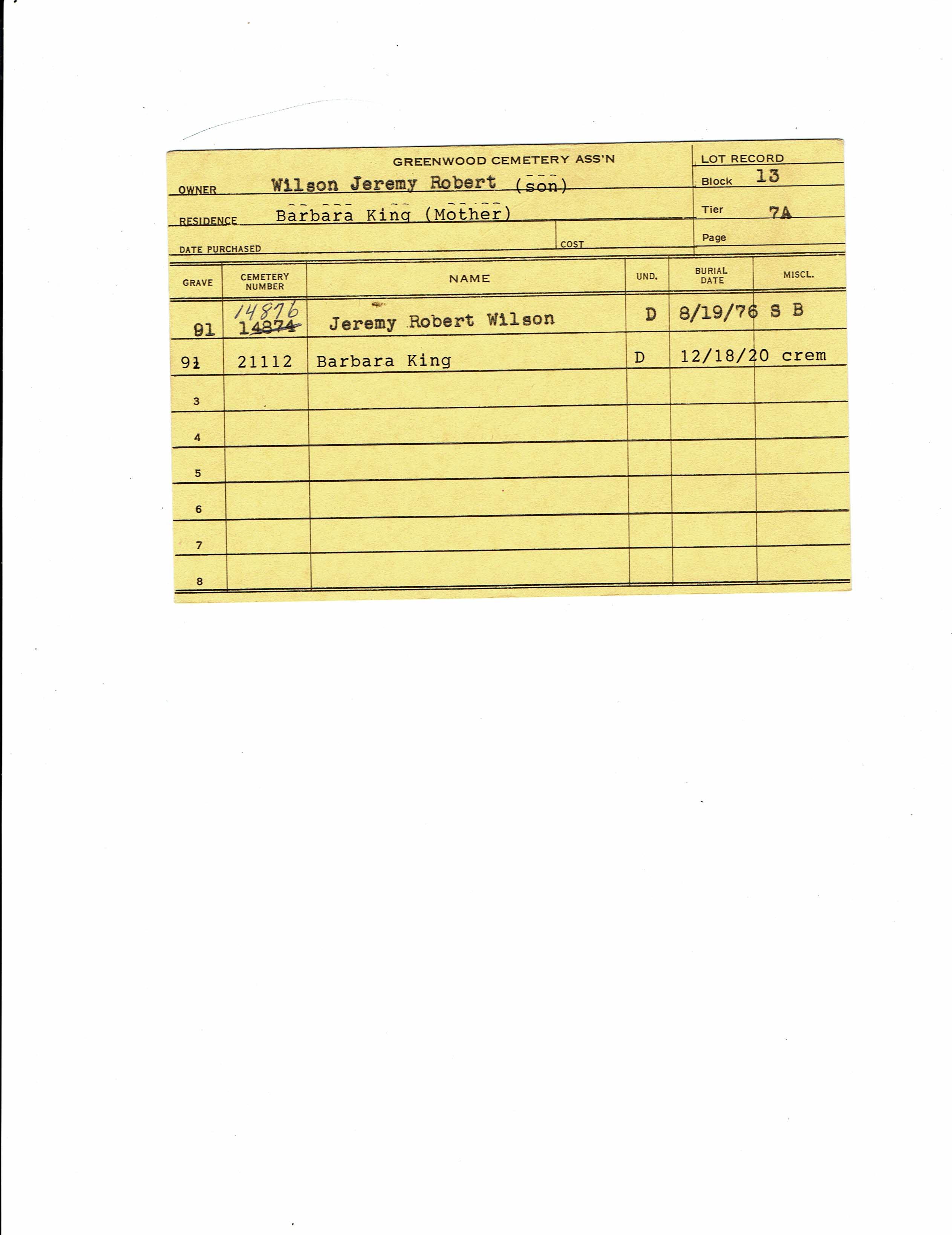 Block 13, Tier 7A, Grave 91