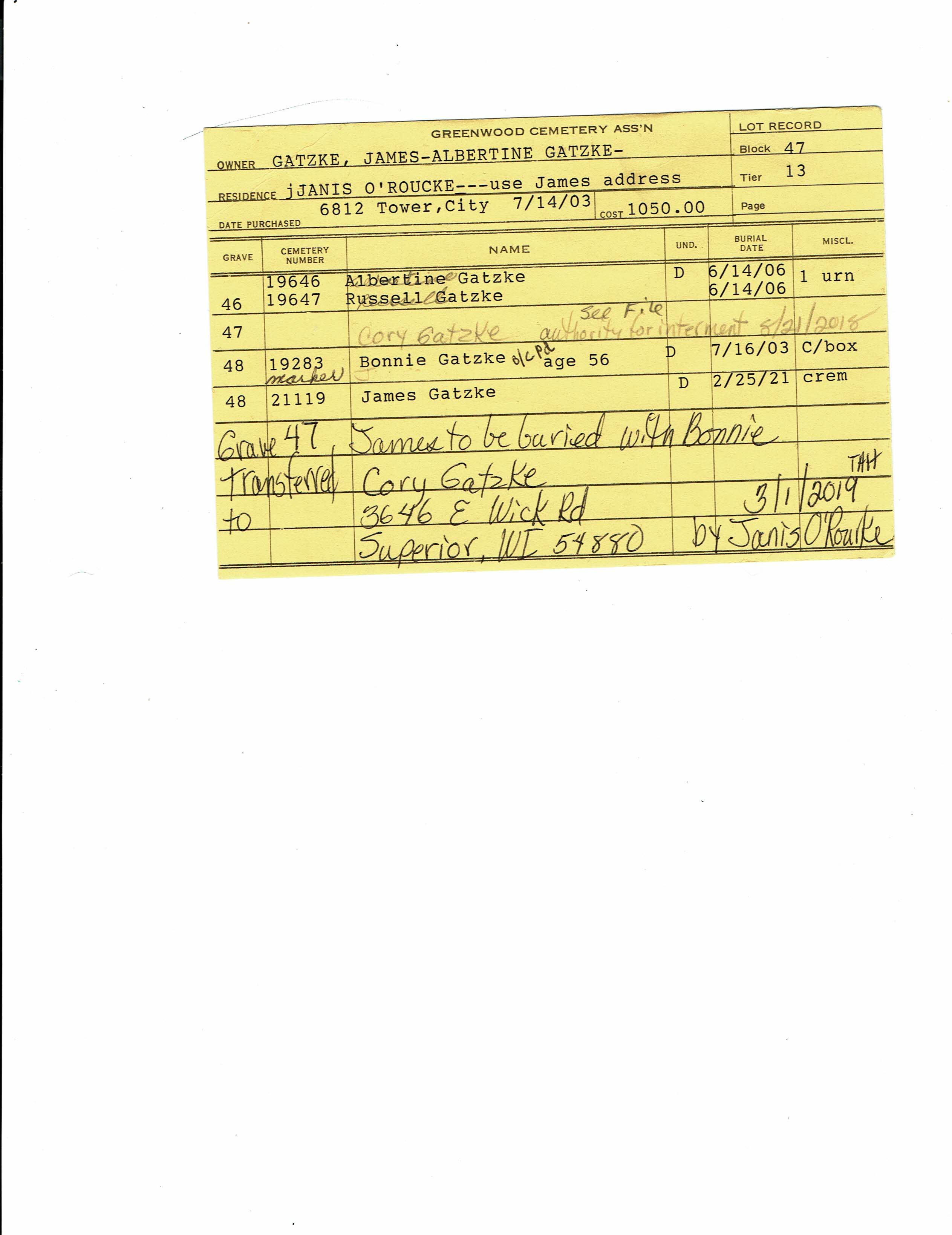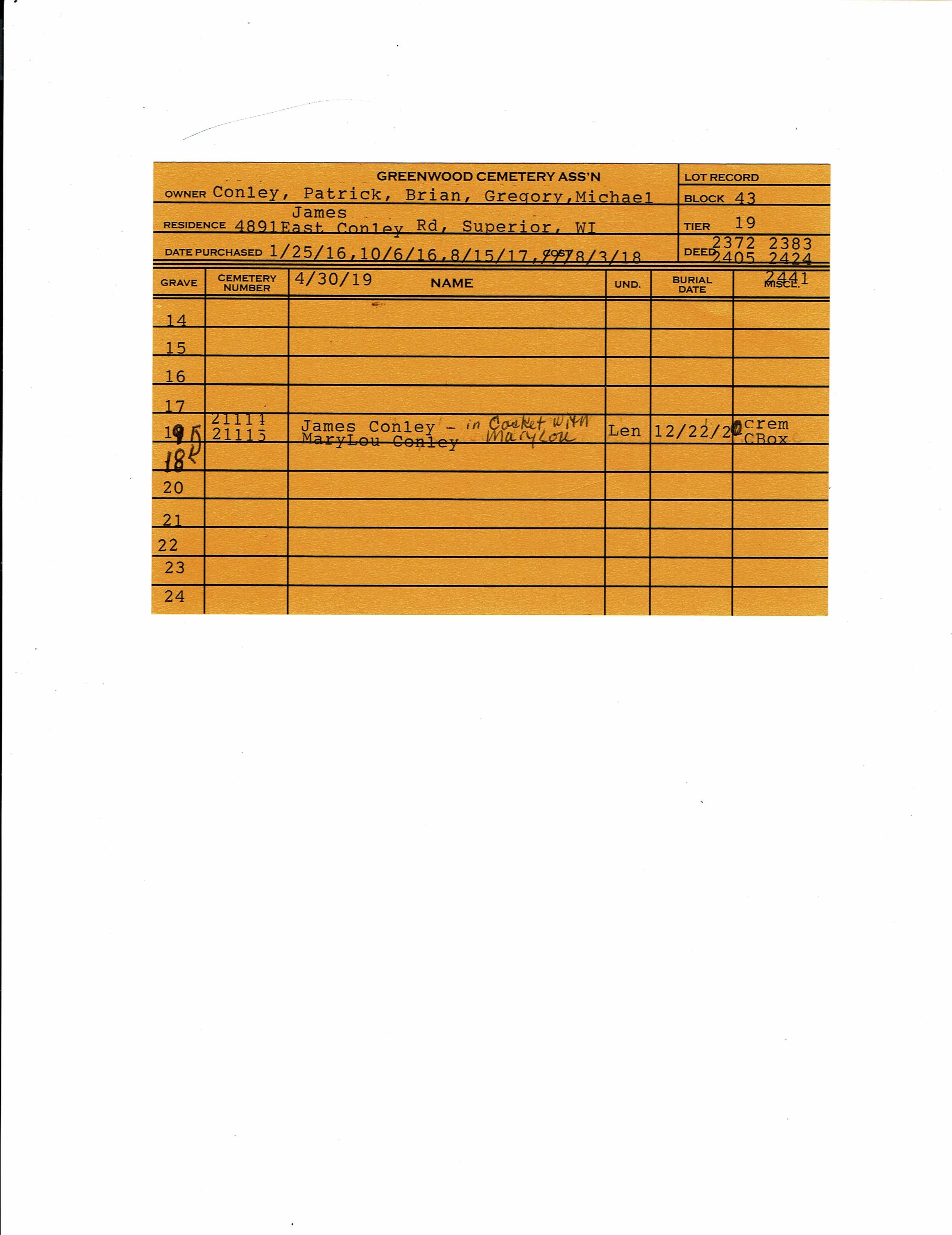 Block 43, Lot 19, Grave 19