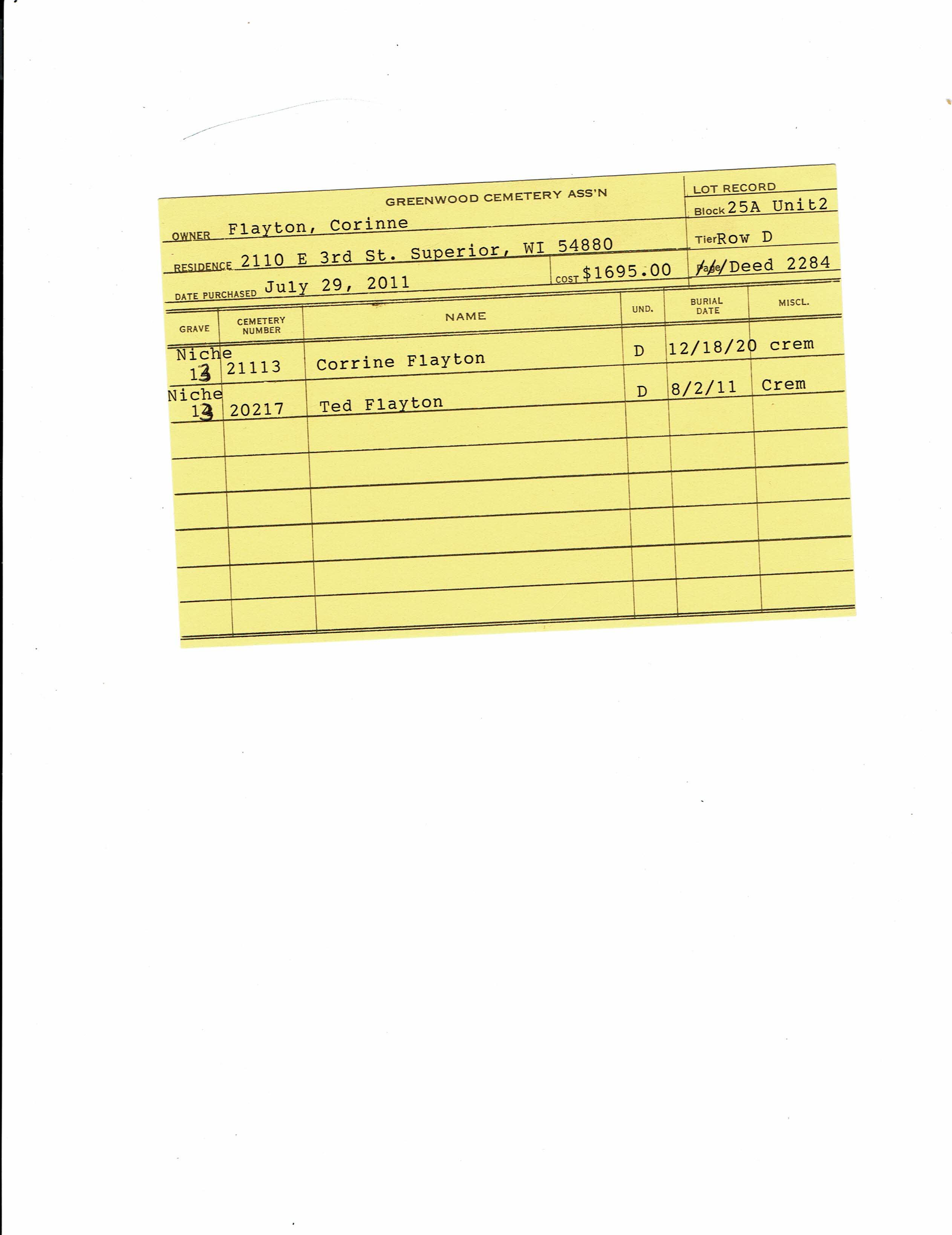 Block 25A, Tier Row D, Lot Unit 2, Grave 13
