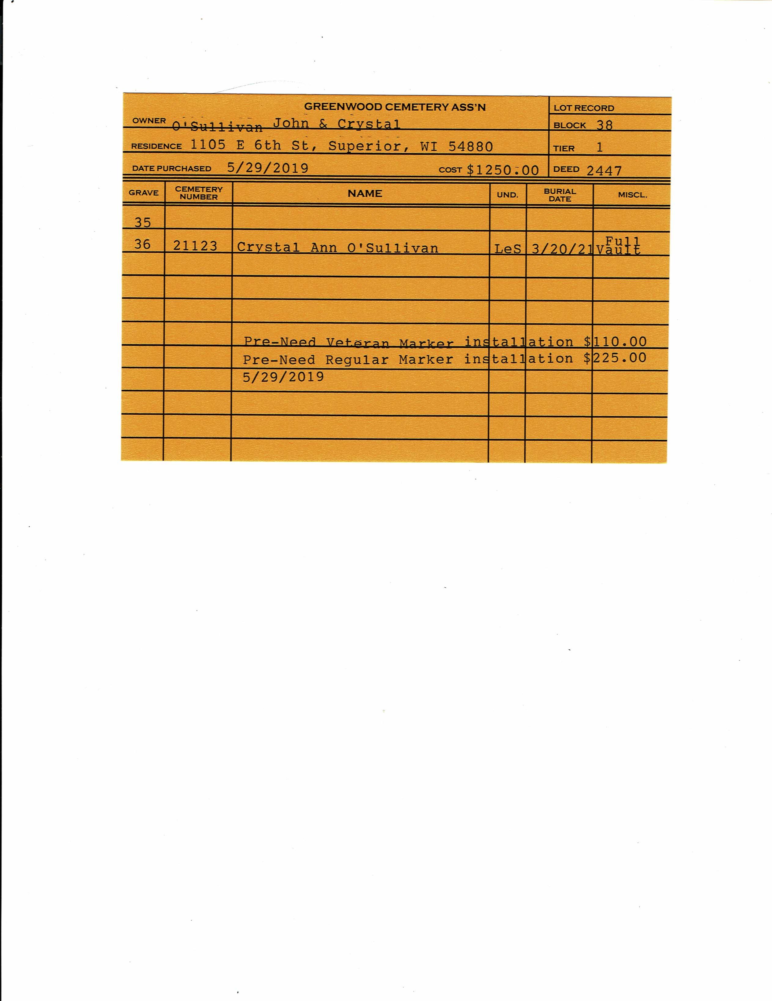 Block 38, Tier 1, Grave 36