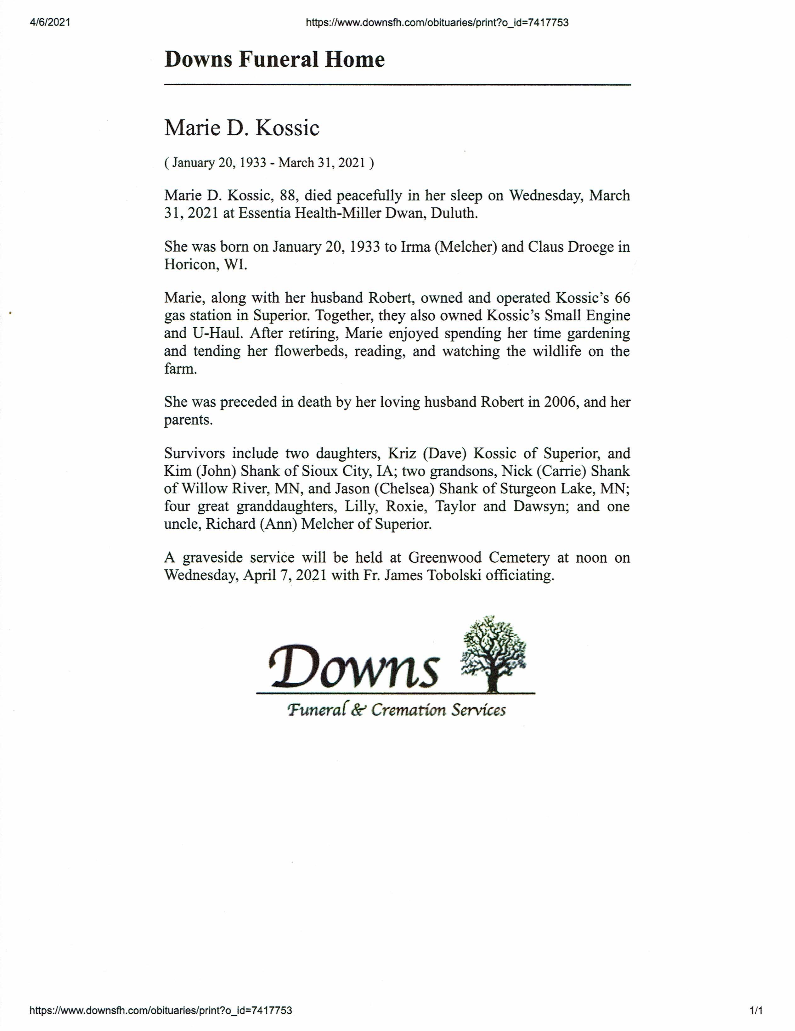 Marie D Kosic