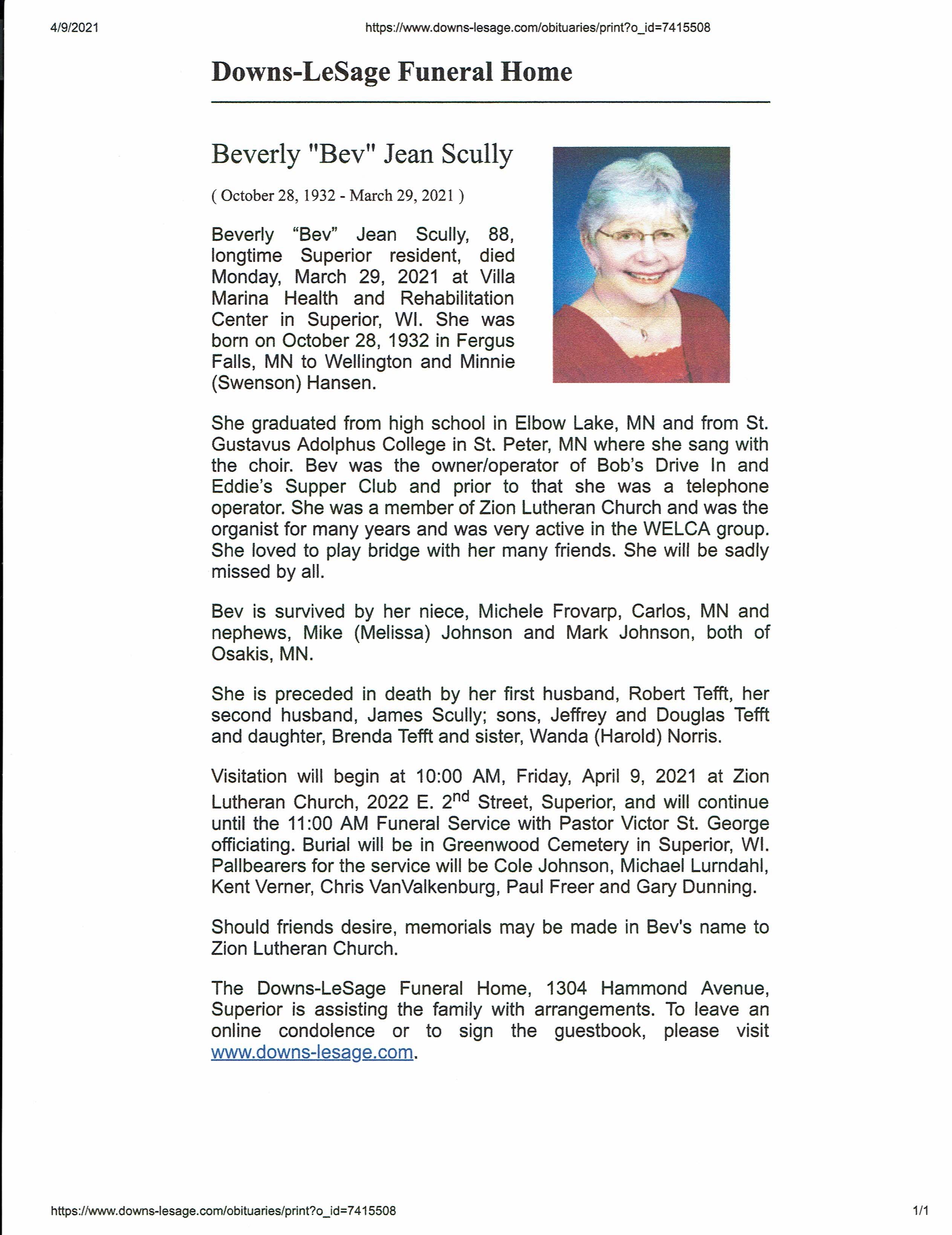 Beverly Scully (Tefft)