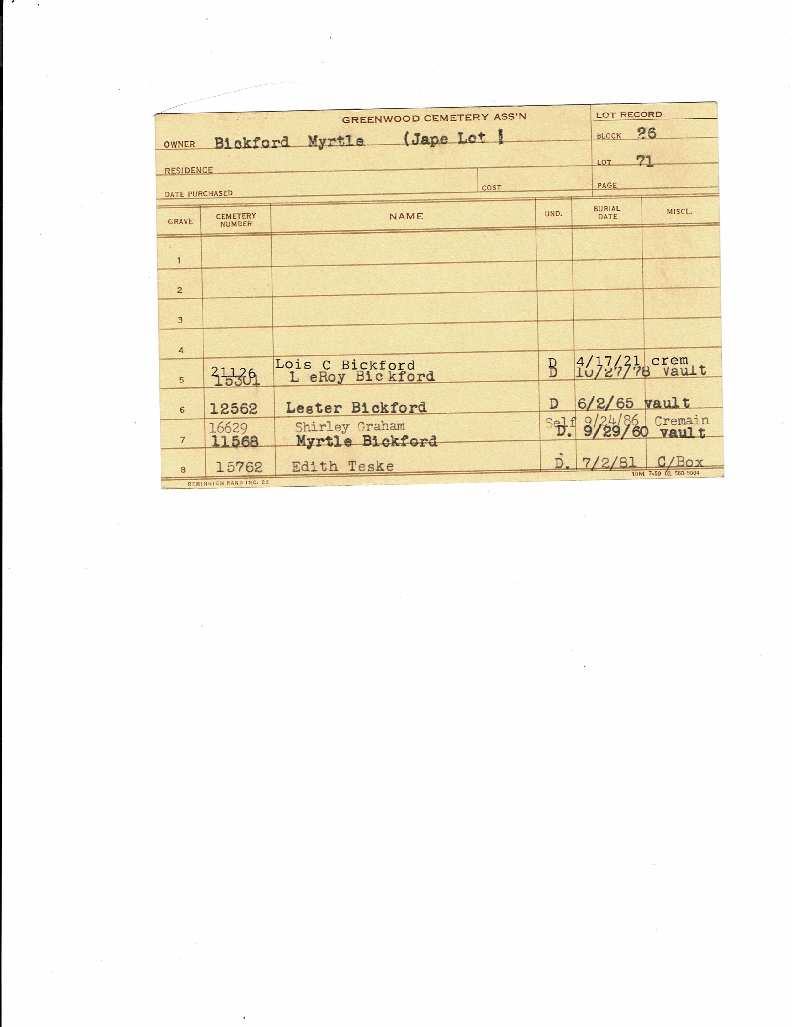 Block 26, Lot 71, Grave 5