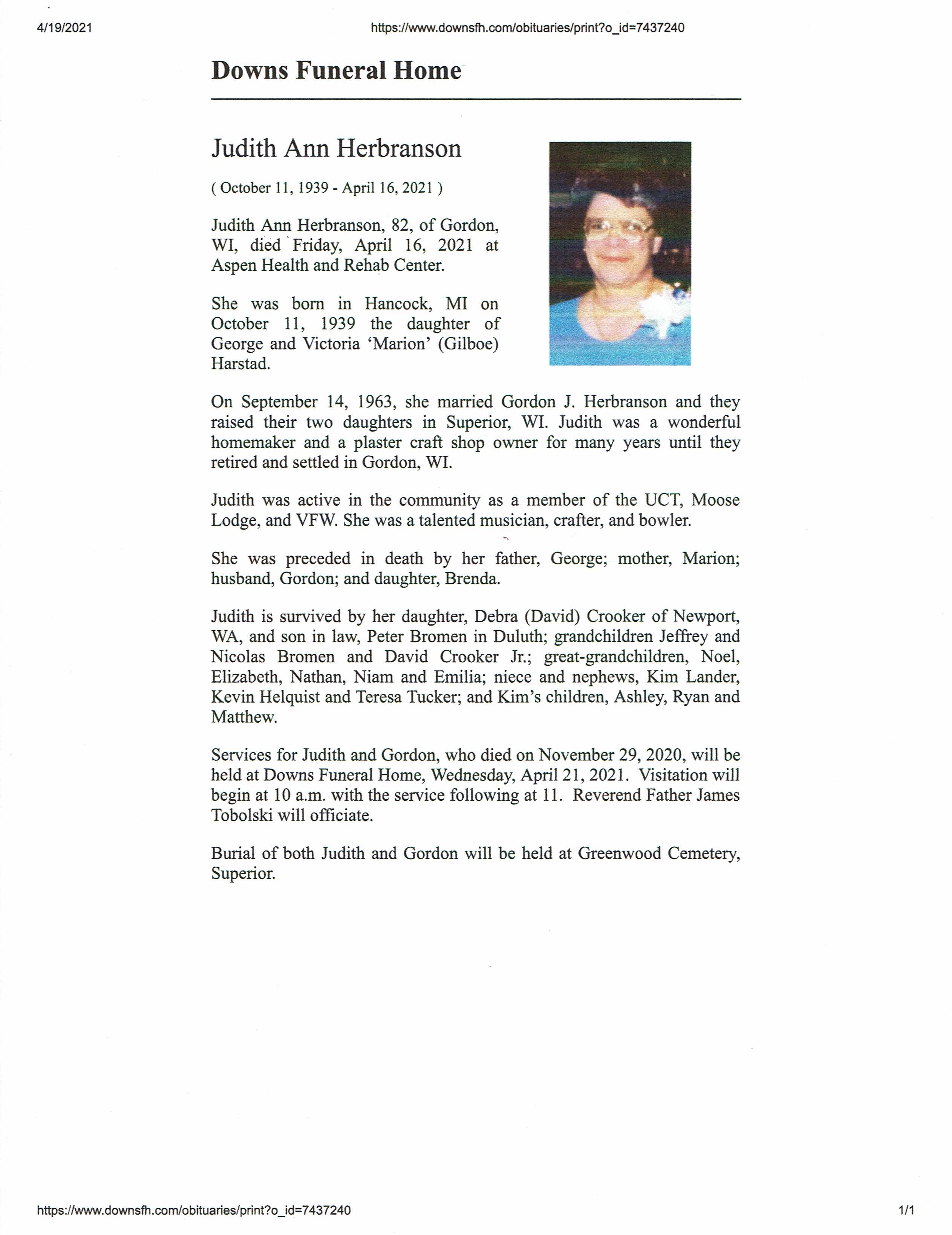 Judith Ann Herbranson