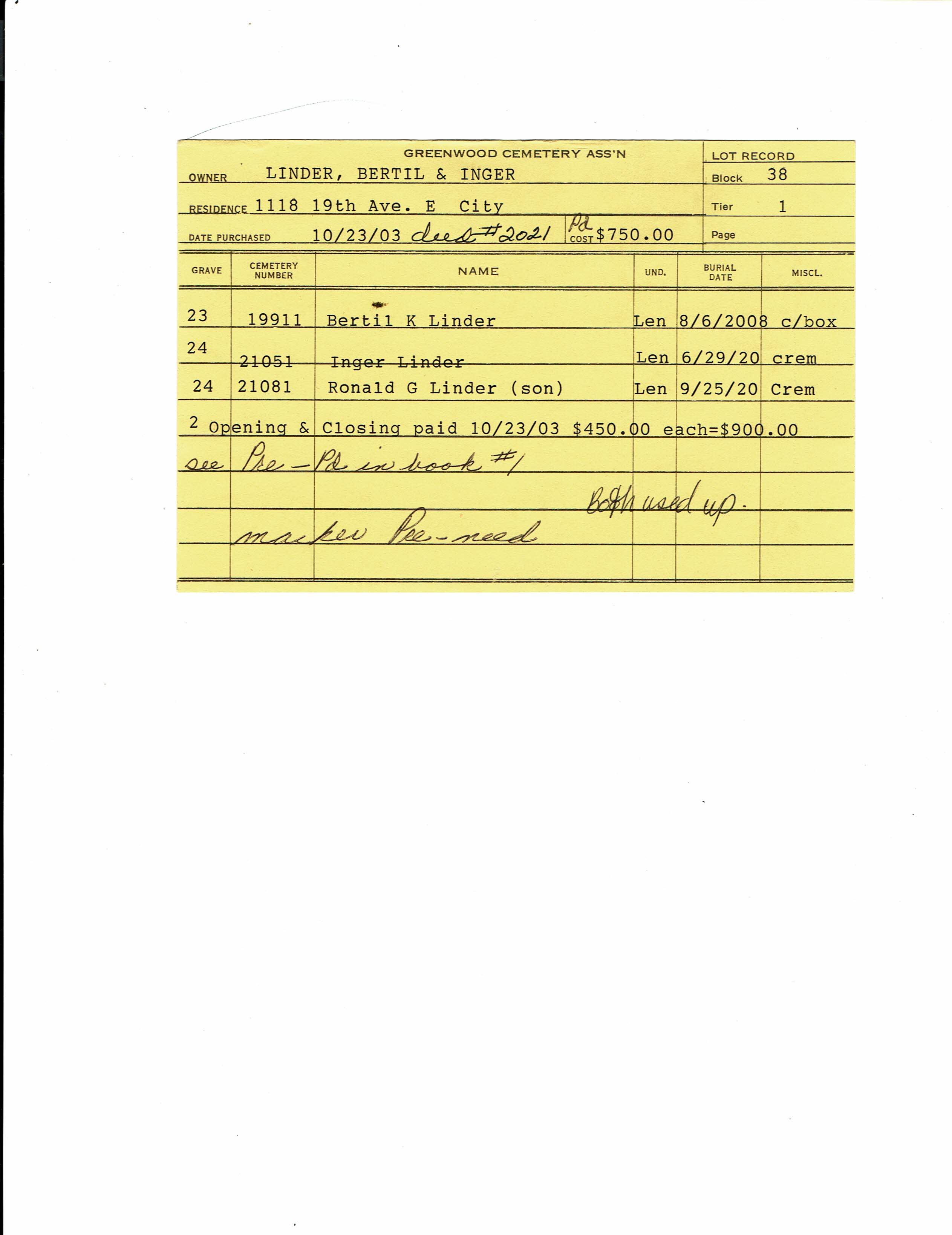 Block 36, Lot 3, Grave 3