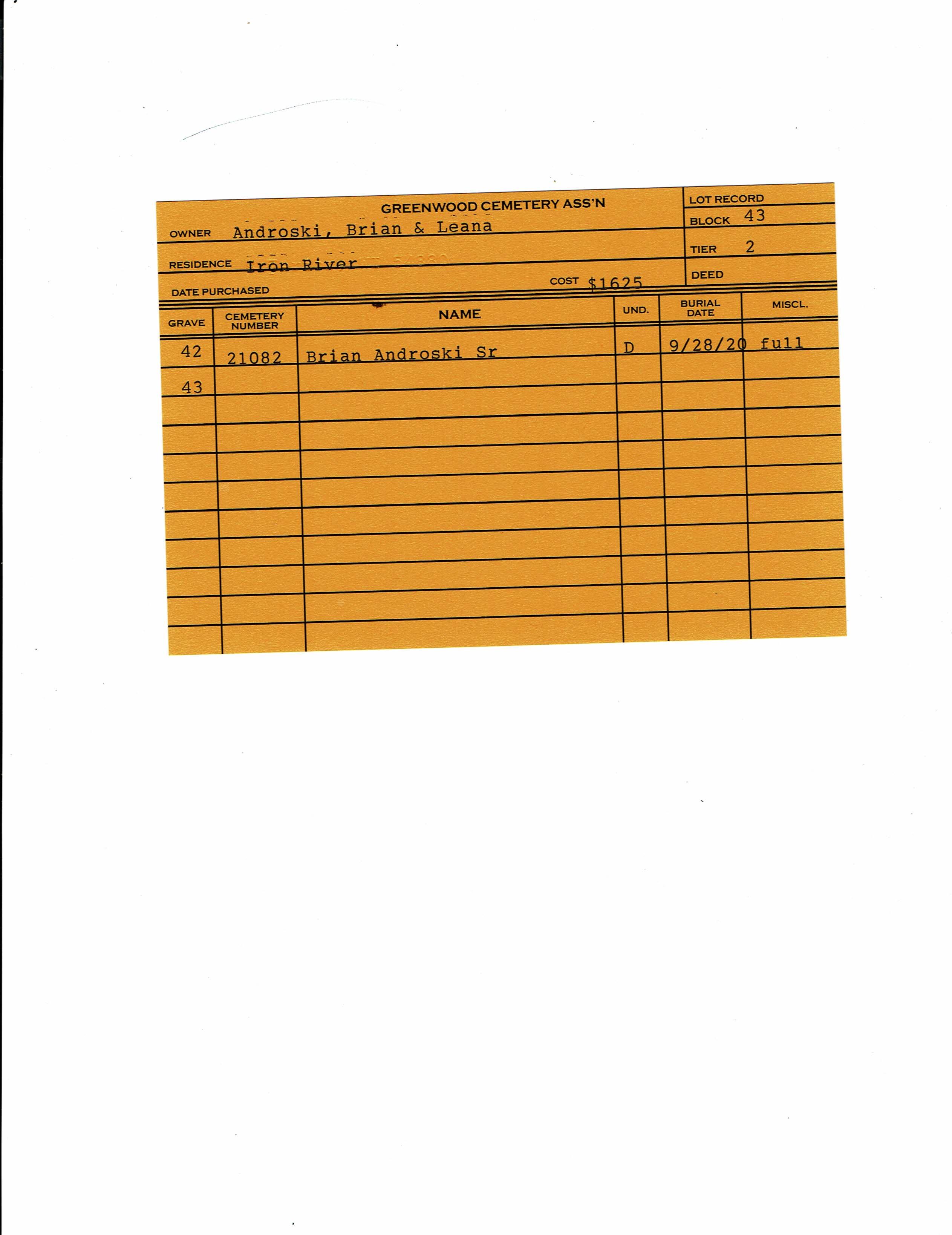 Block 43, Tier 2, Grave 42