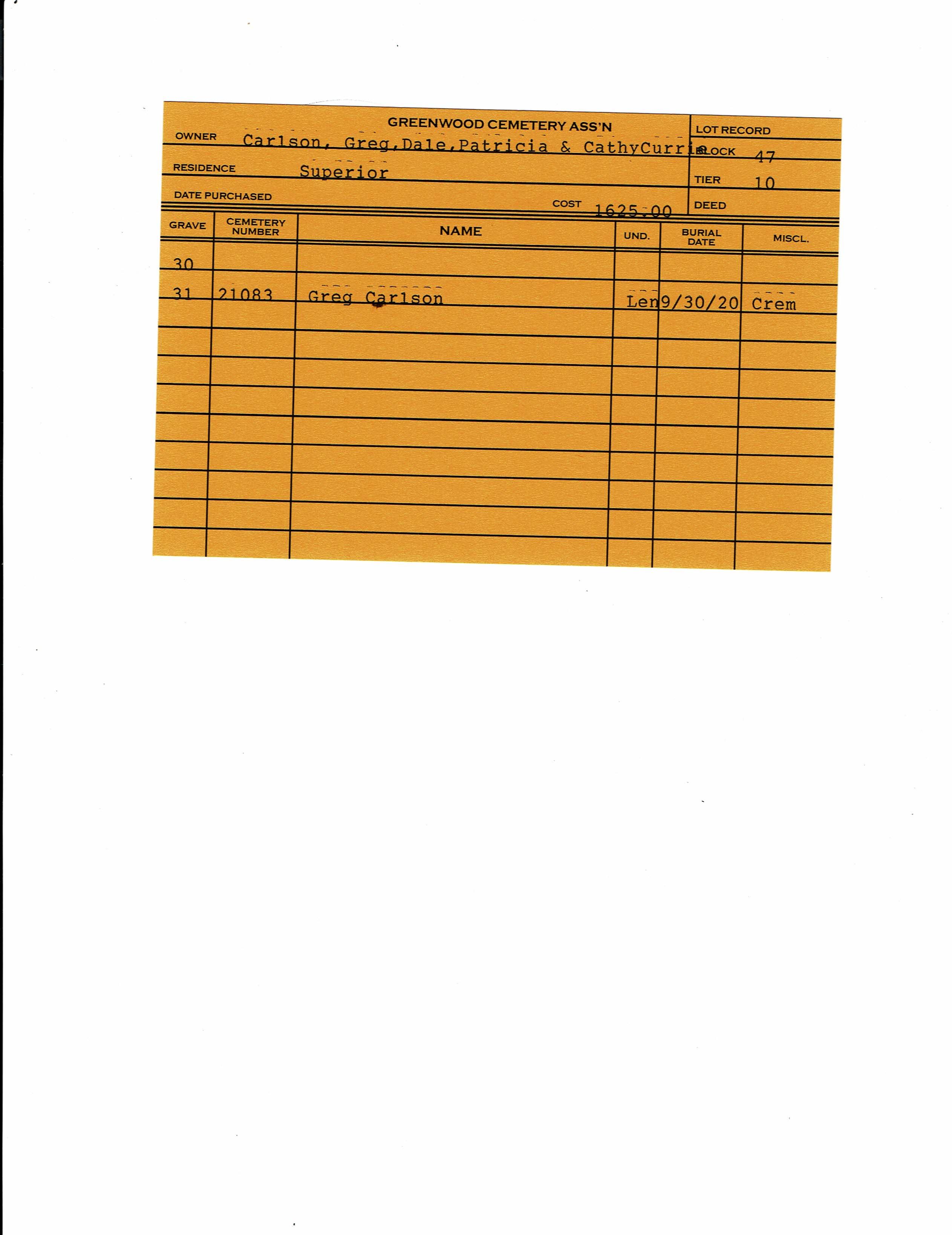 Block 47, Tier 10, Grave 31
