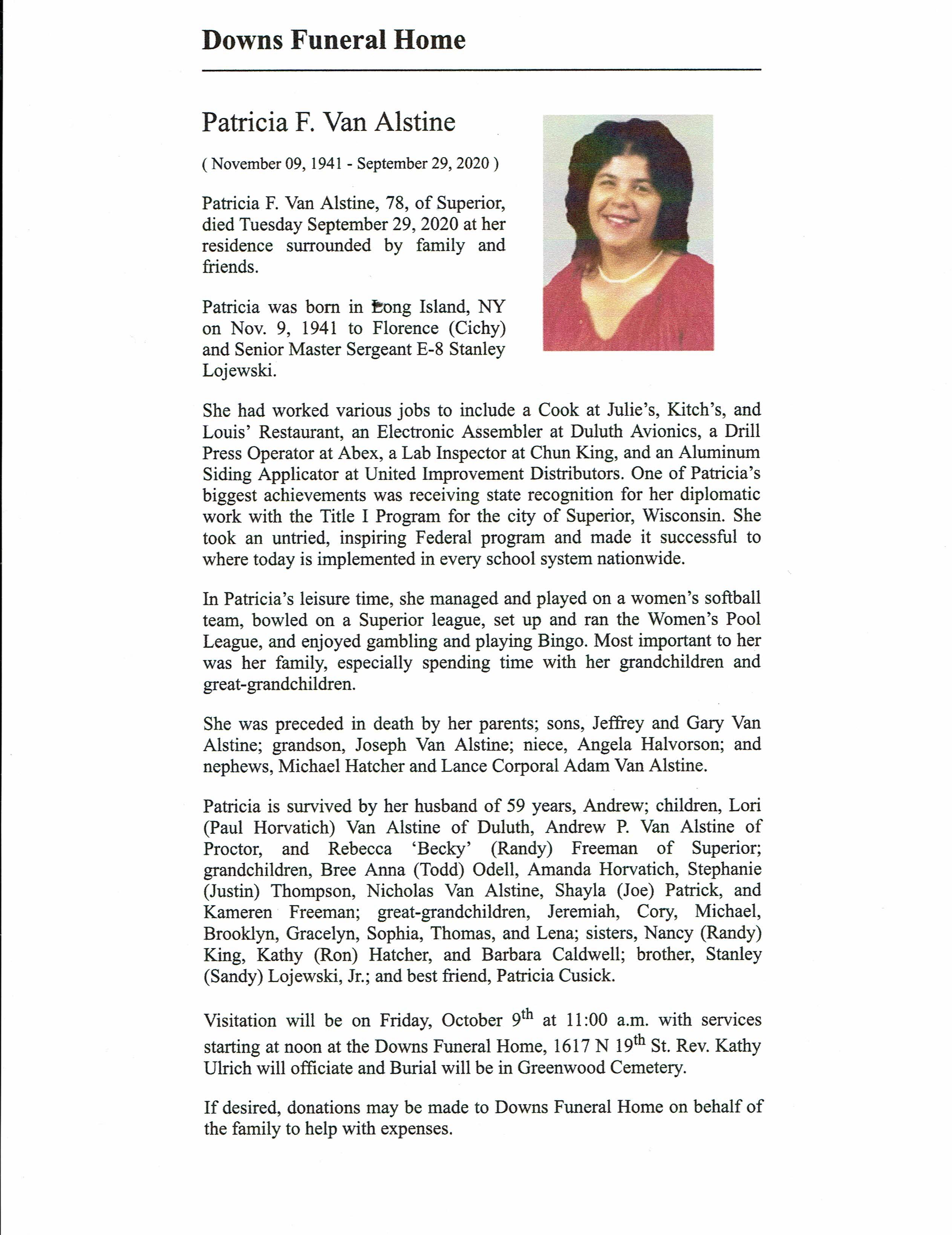 Patricia F VanAlstine