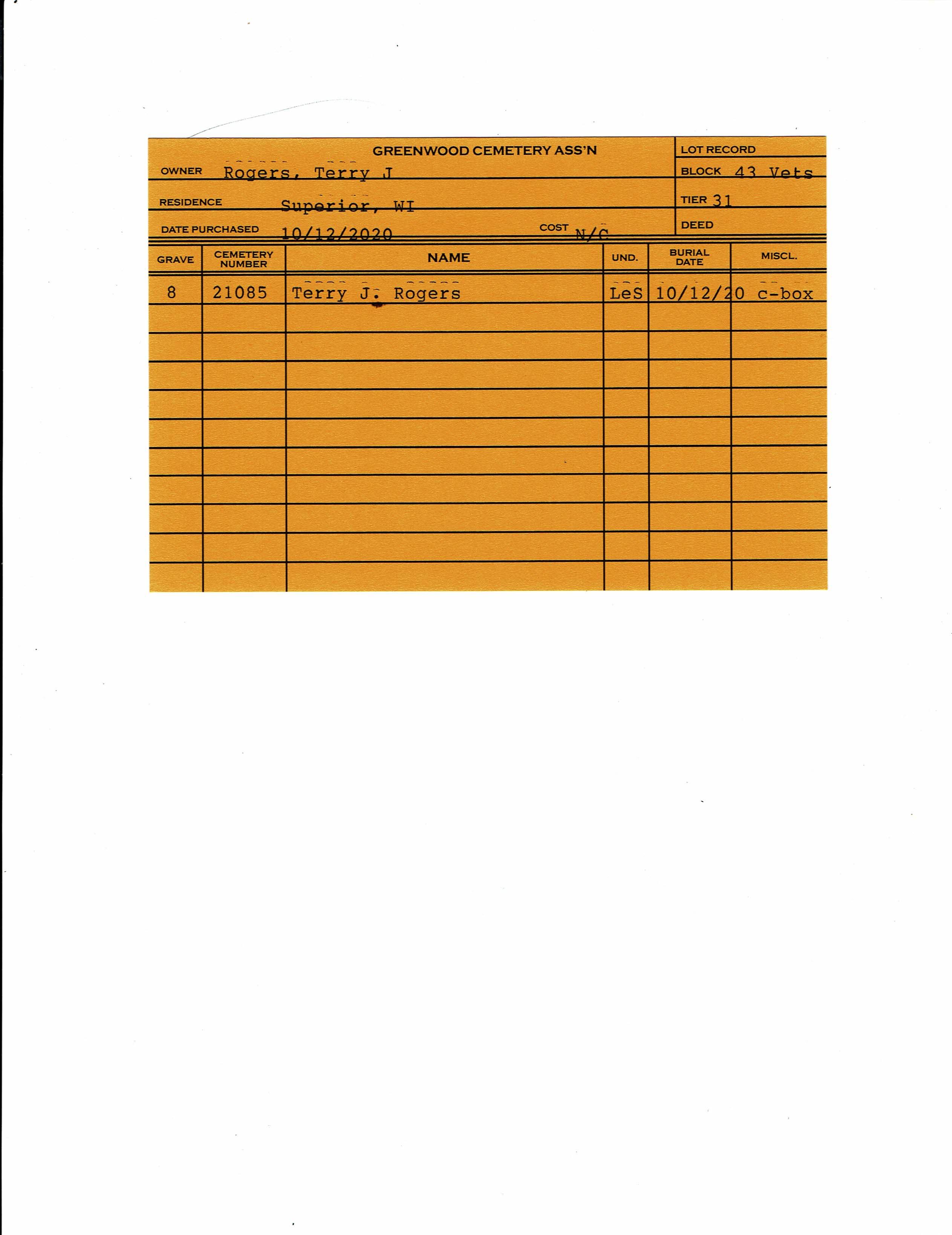 Block 43, Tier 31, Grave 8