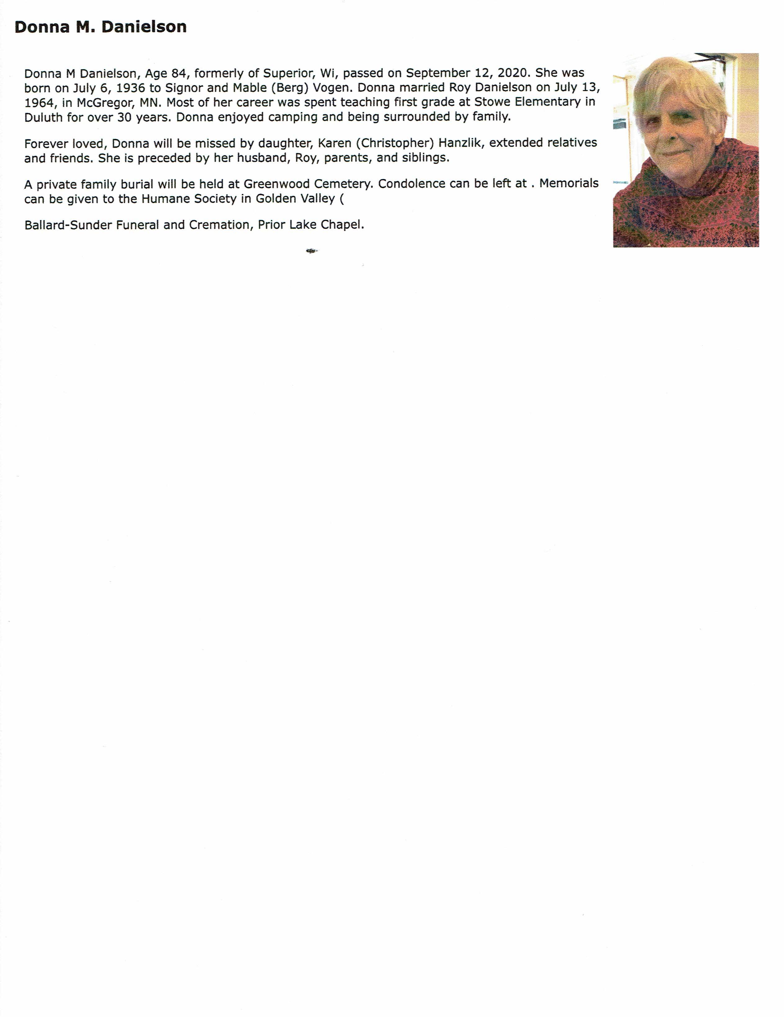 Donna M Danielson
