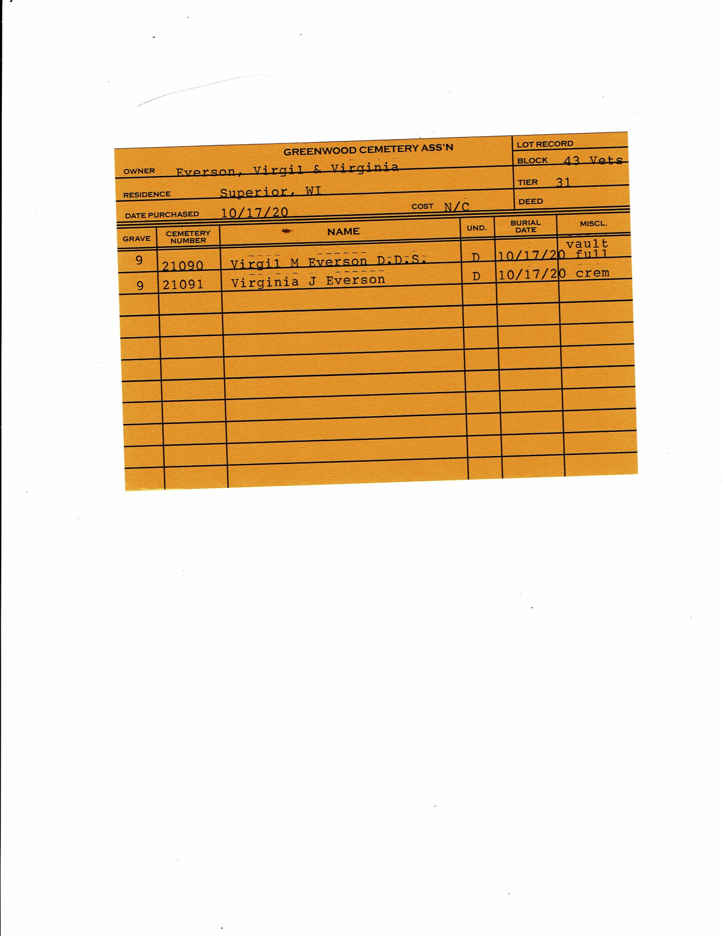 Block 43, Tier 31, Grave 9