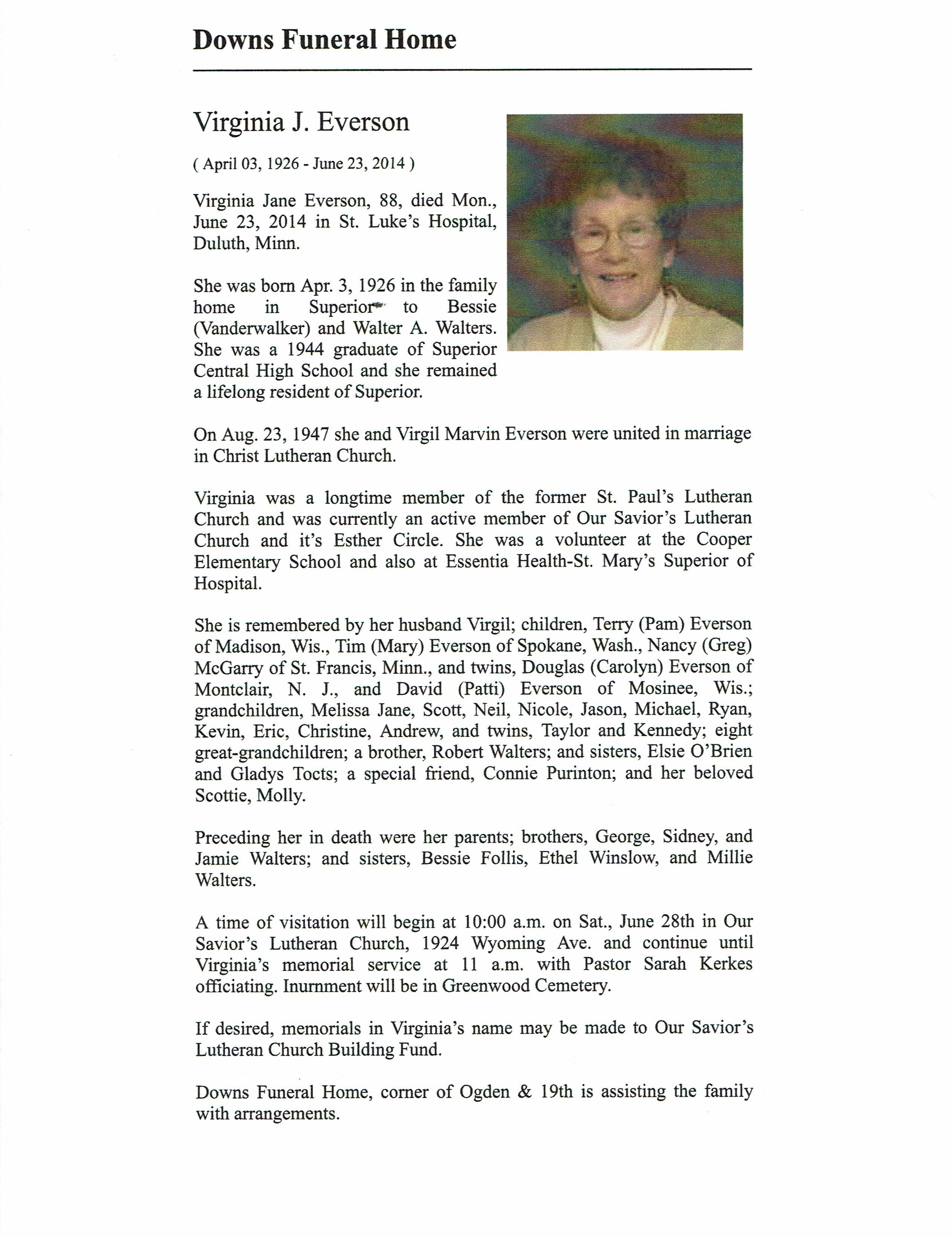 Virginia J Everson