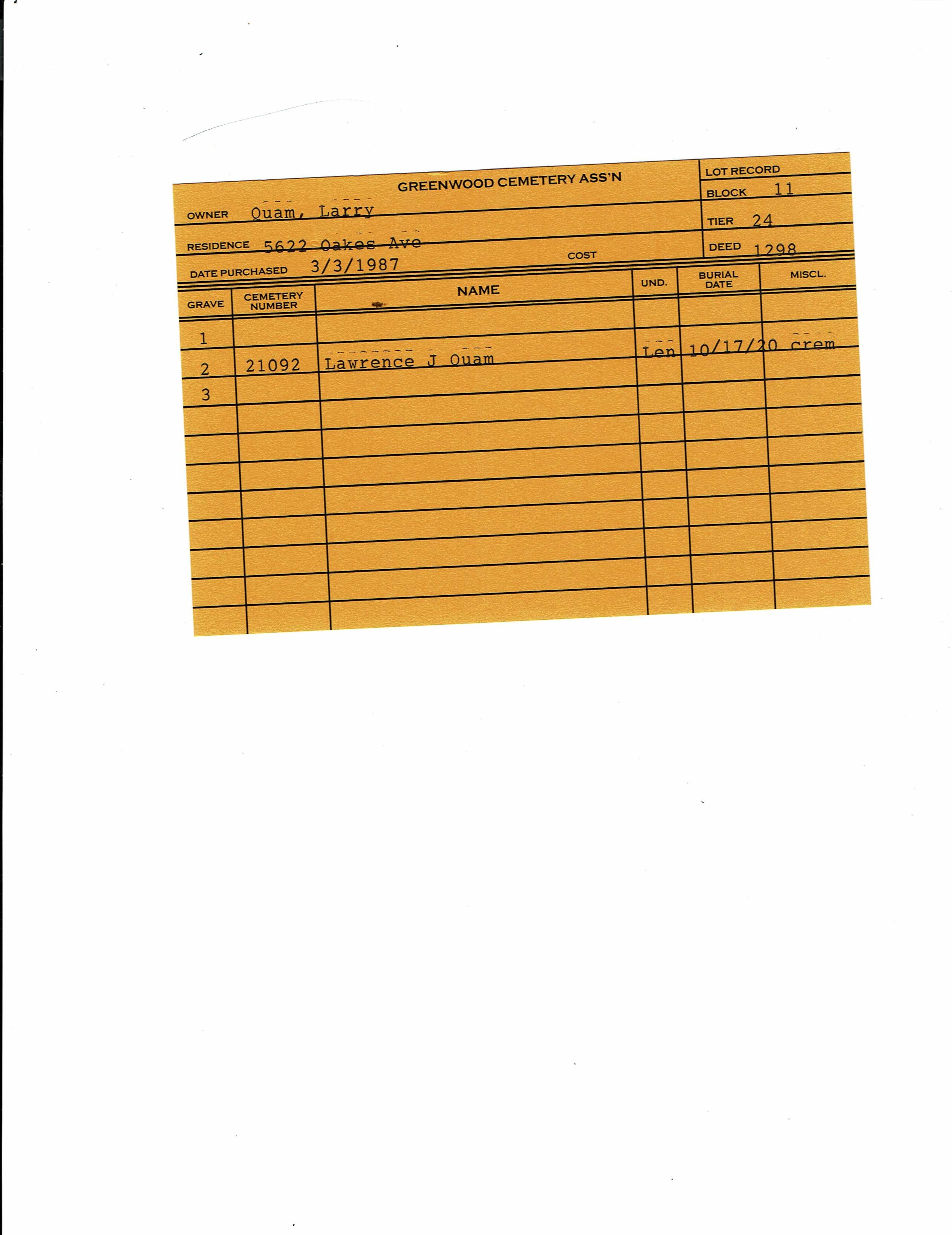 Greenwood Cemetery Association Online Records