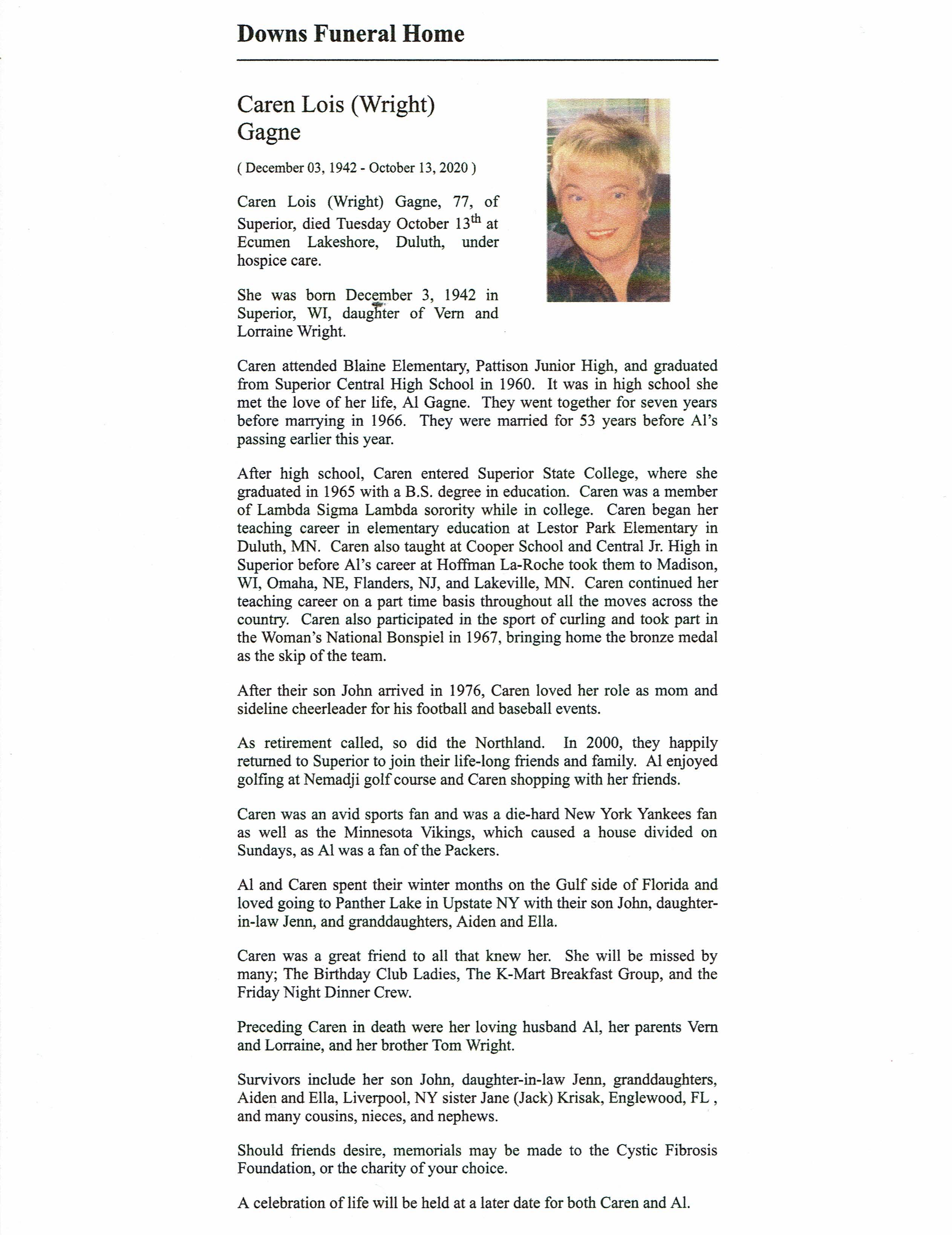 Caren Lois (Wright) Gagne
