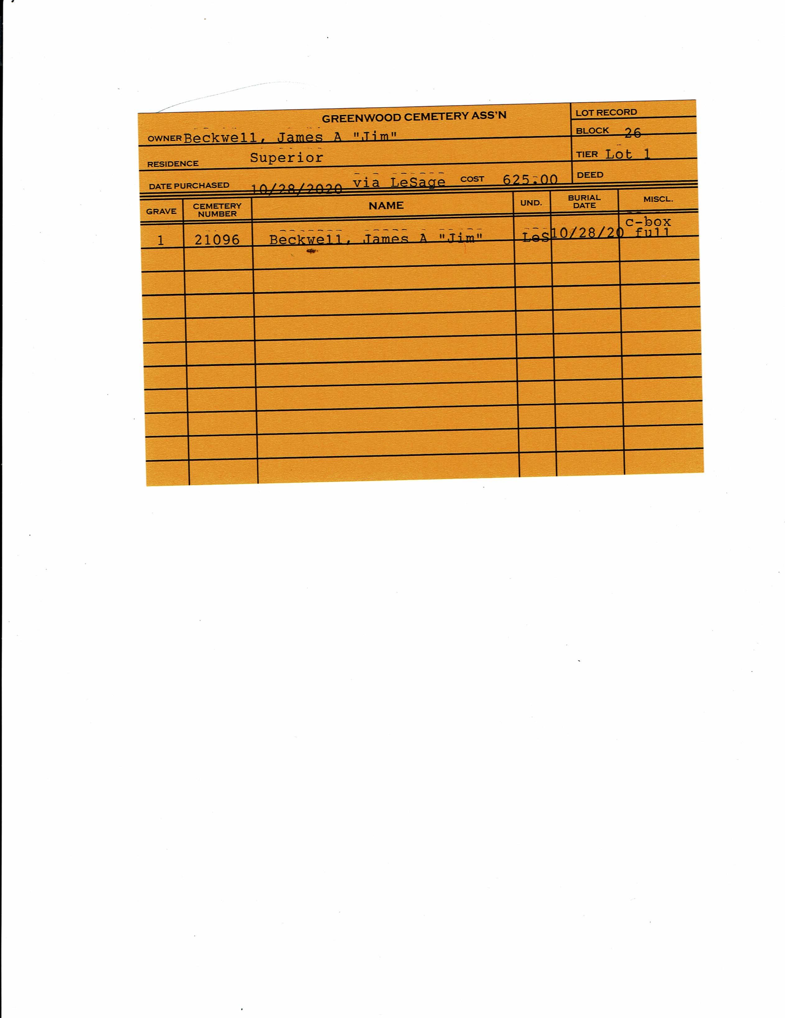 Block 26, Lot 1, Grave 1