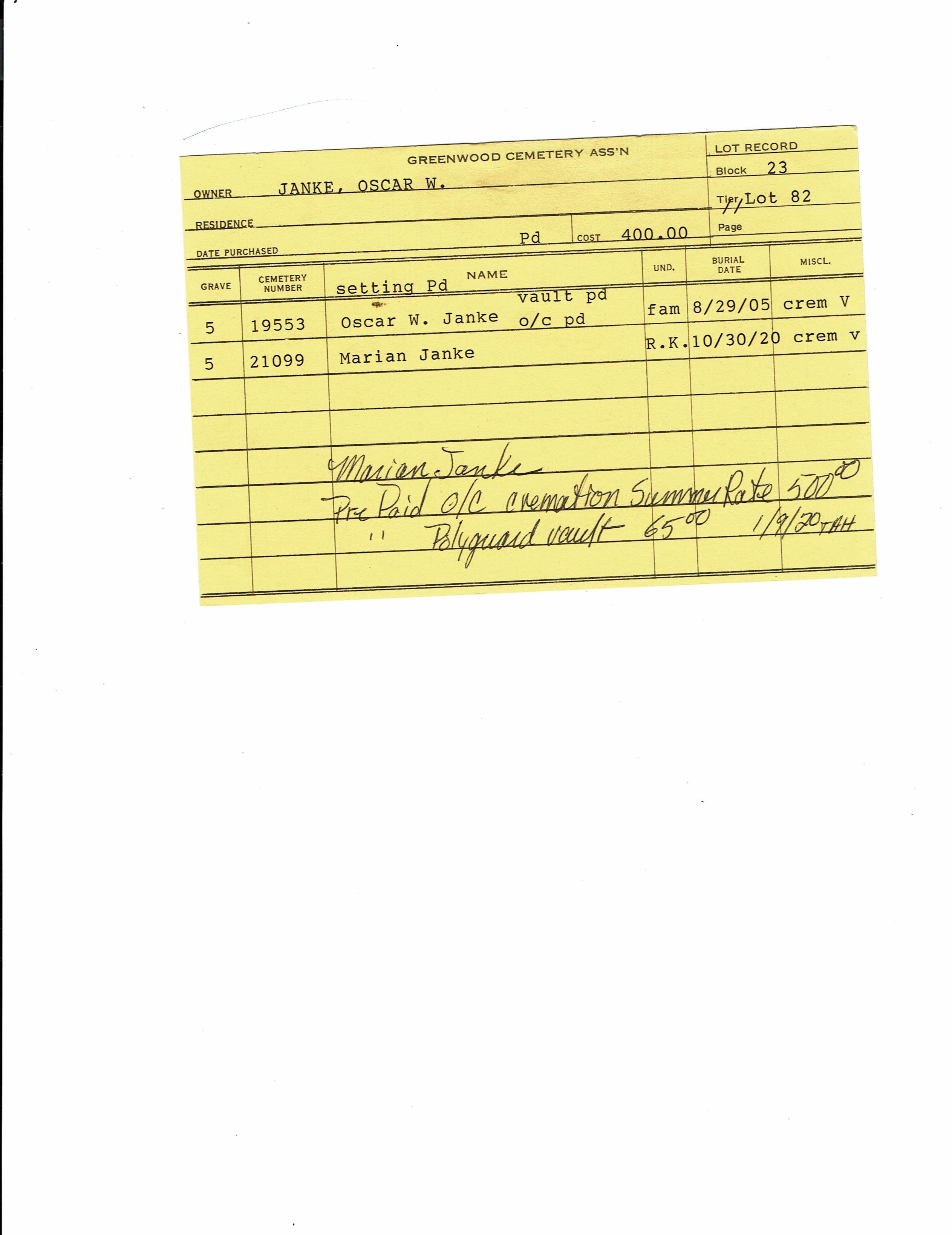 Block 23, Lot 82, Grave 5