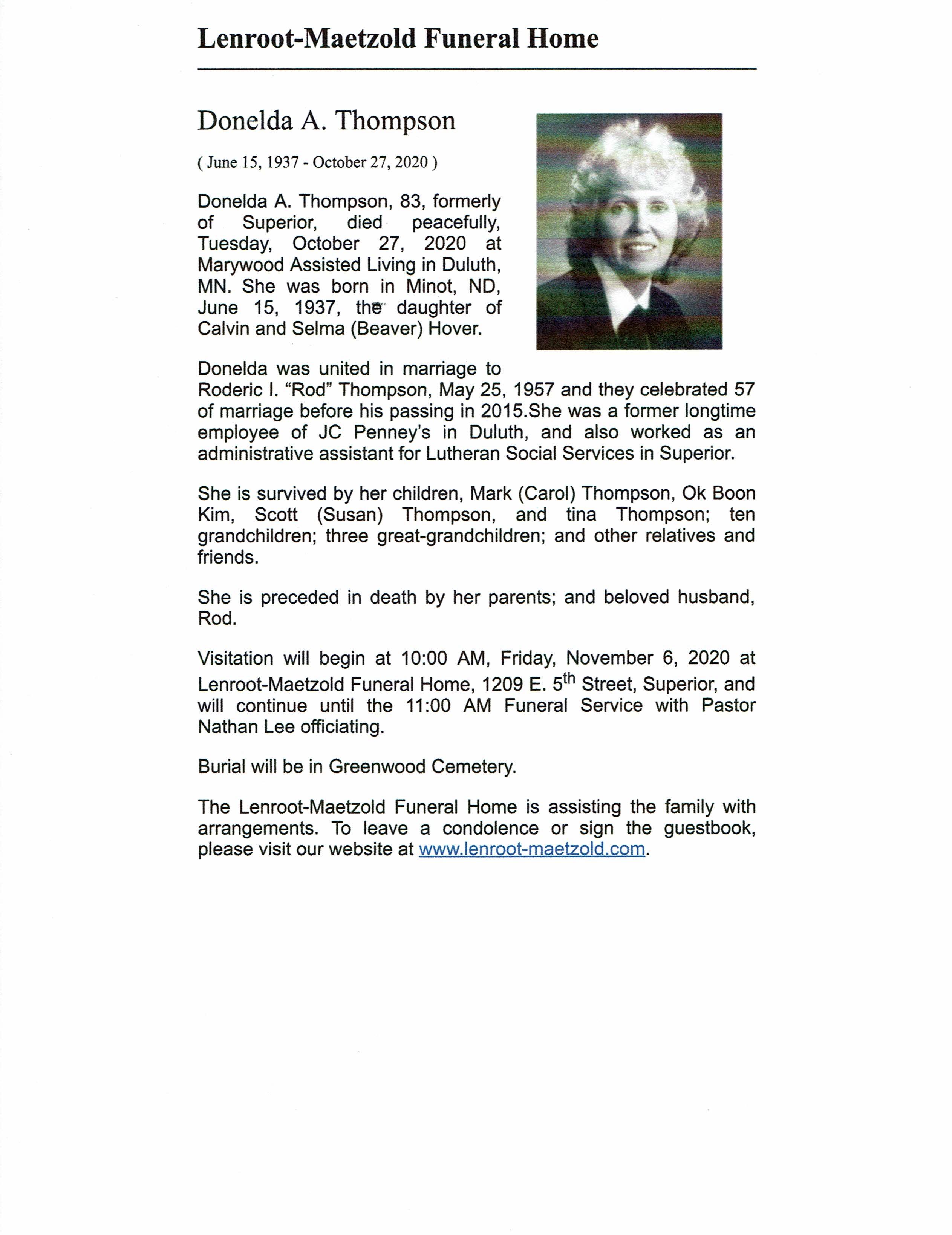 Donelda A Thompson