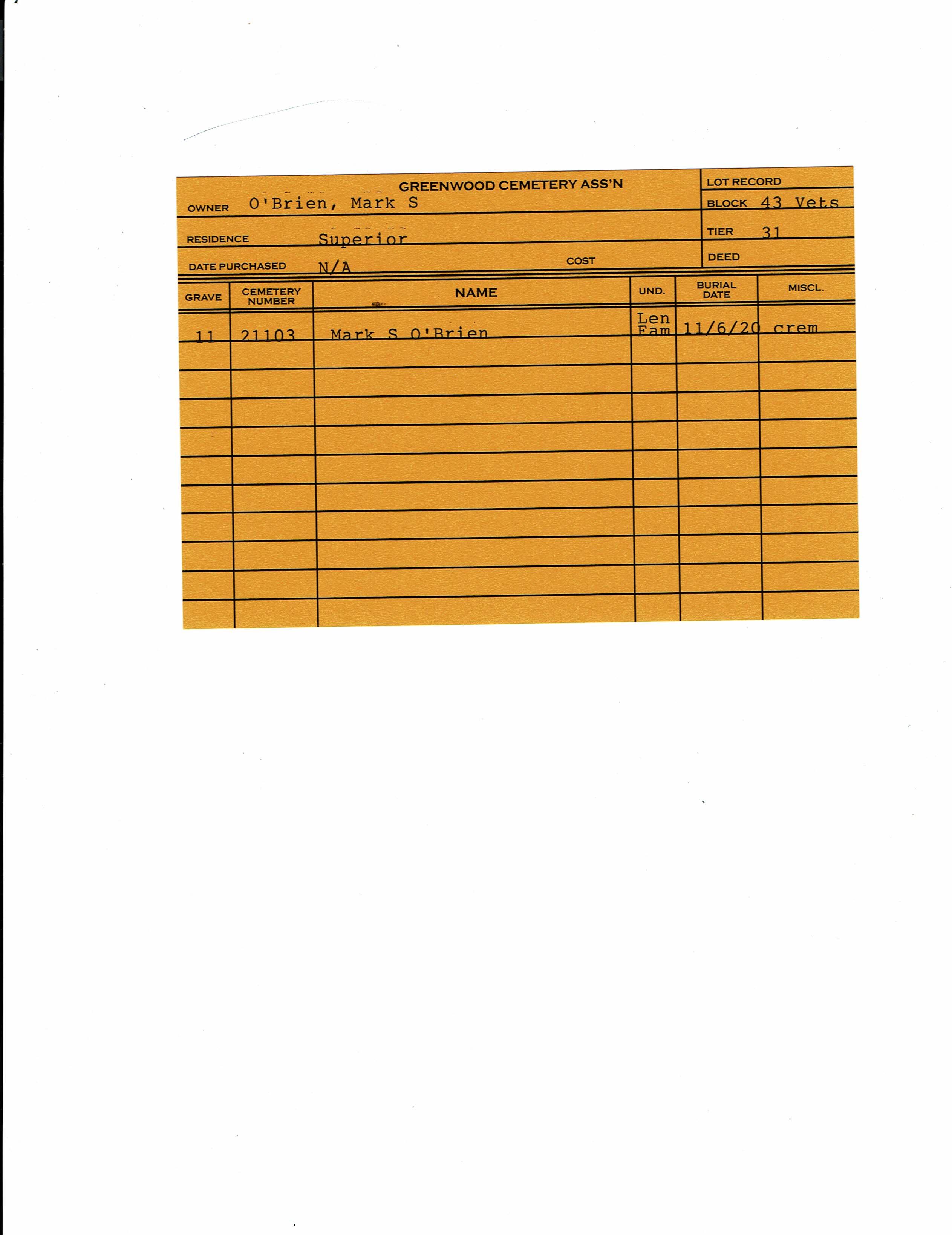 Block 43, Tier 31, Grave 11