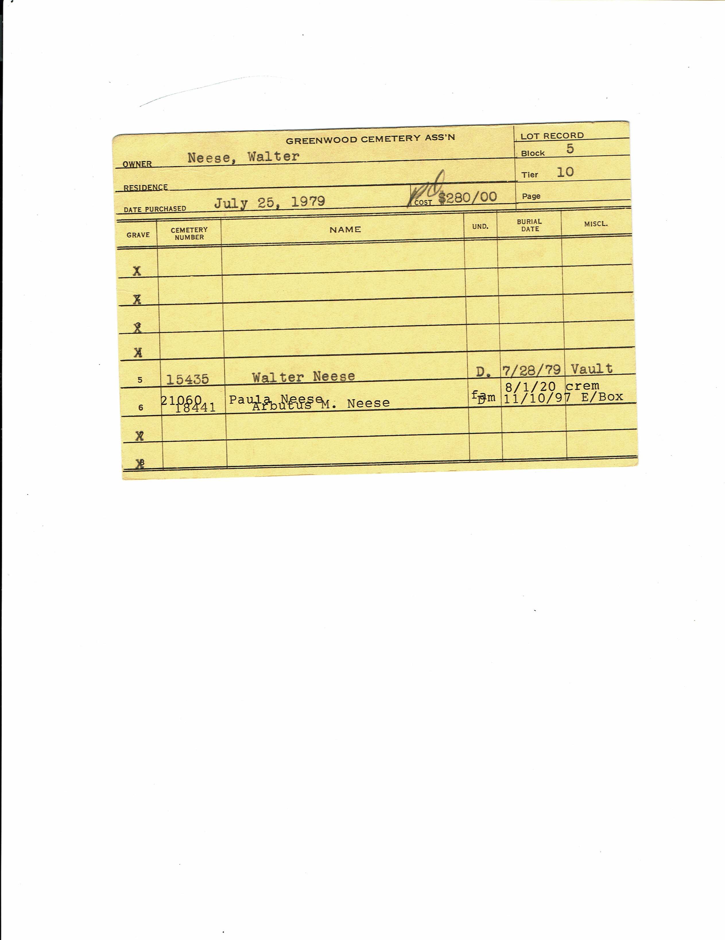 Block 43, Lot 5, Grave 15
