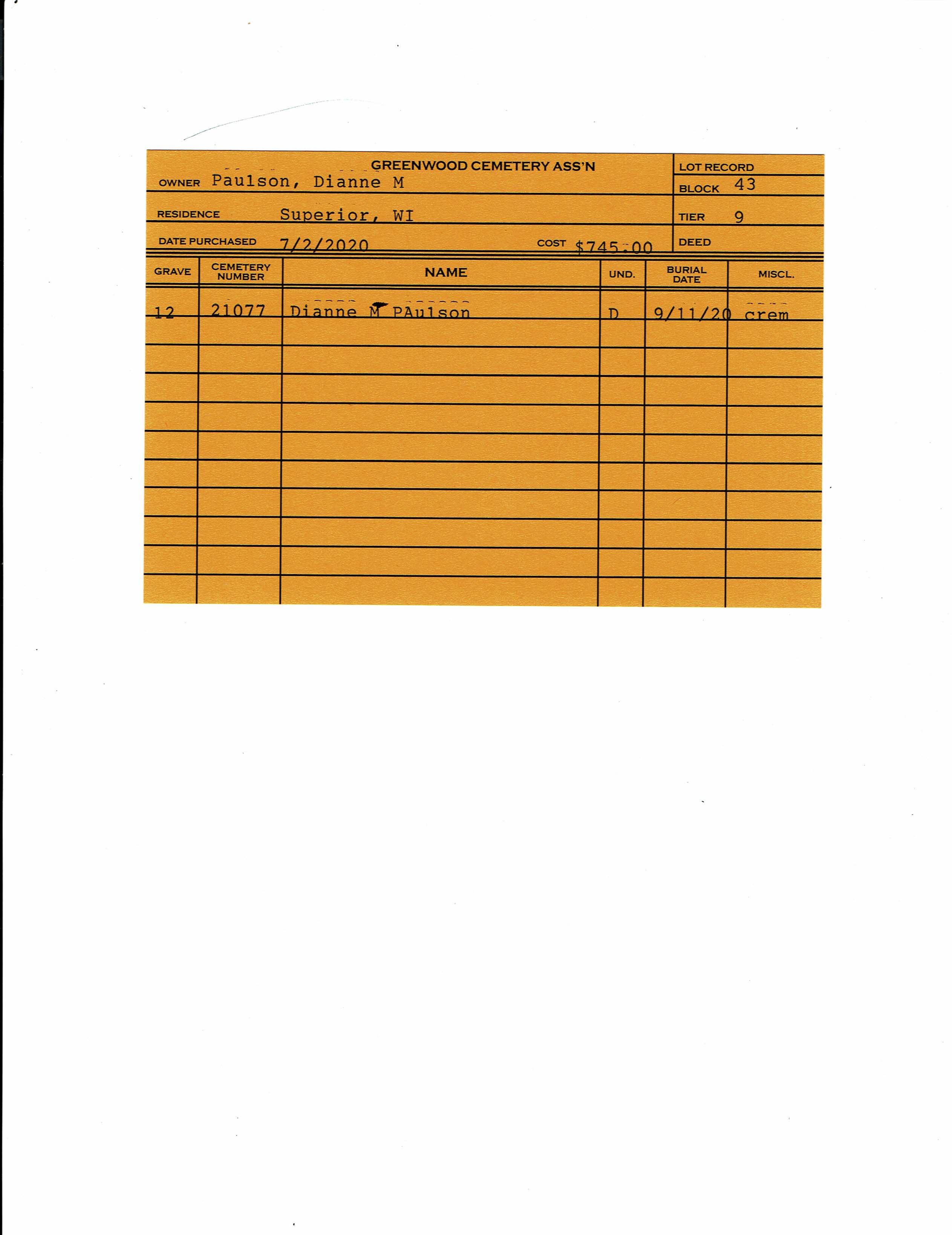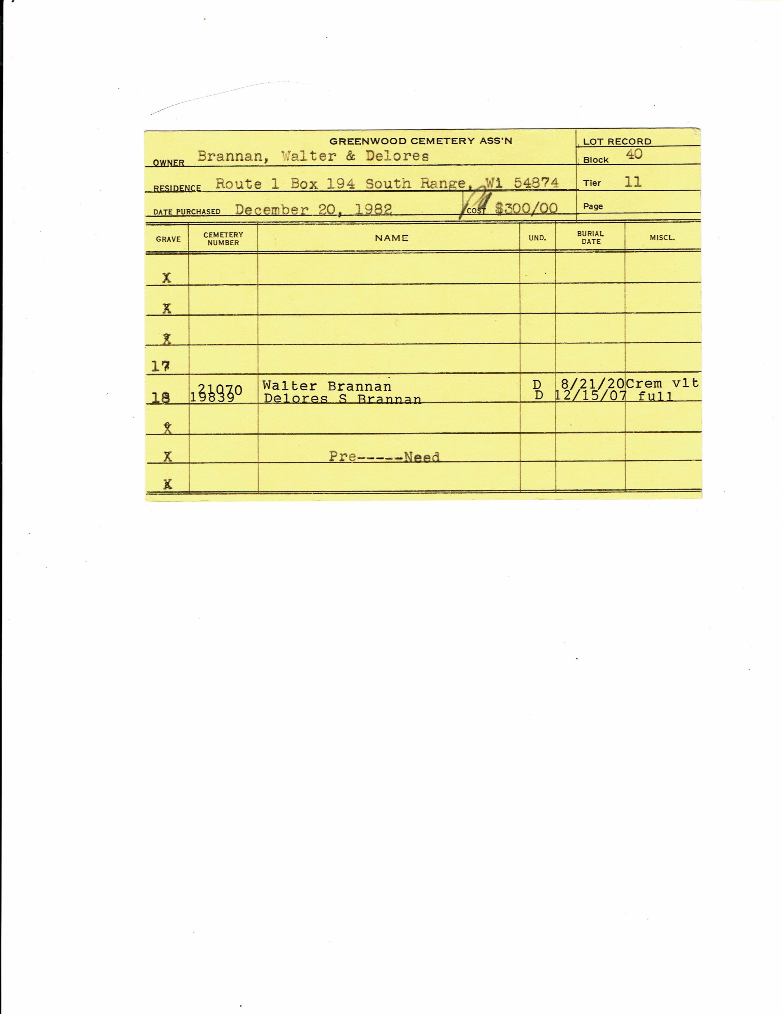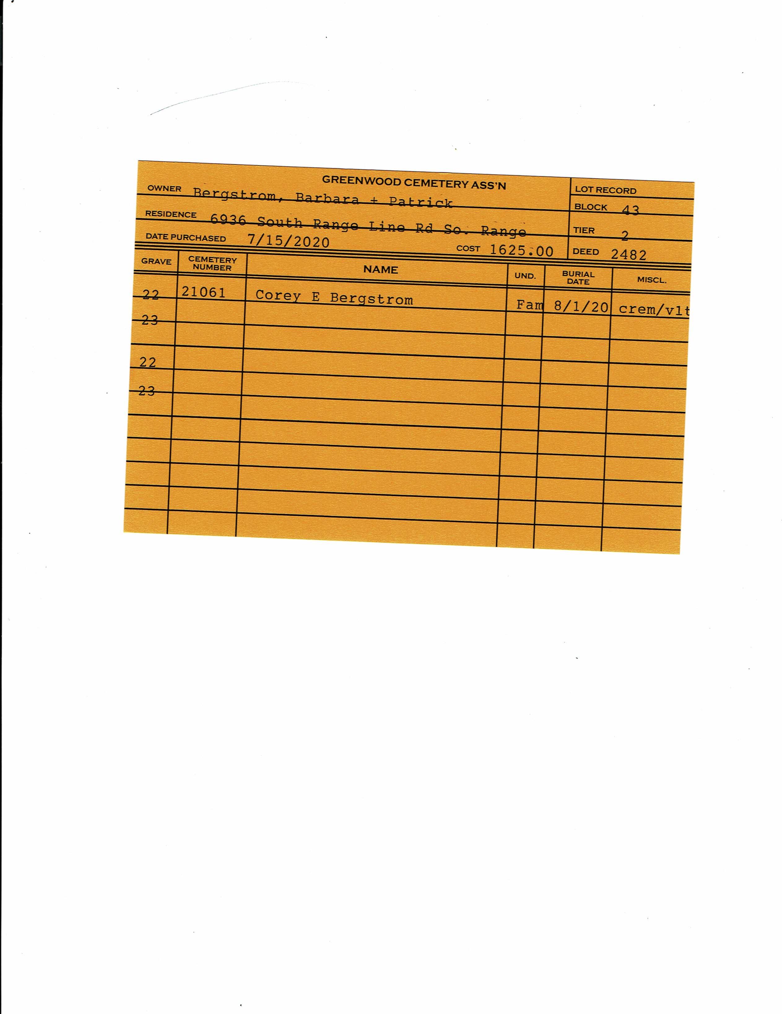 Block 43, Lot 2, Grave 22