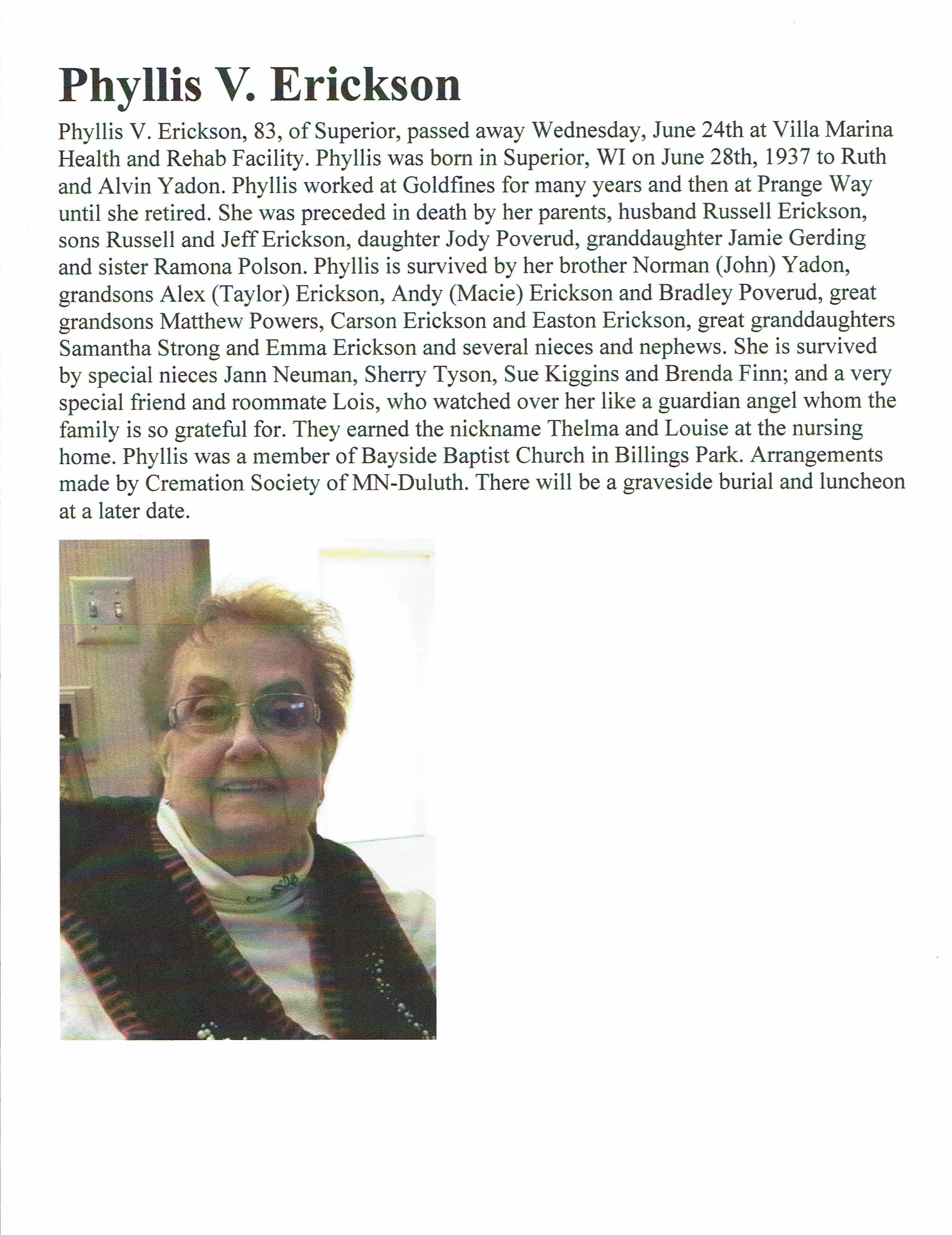 Phyllis V Erickson