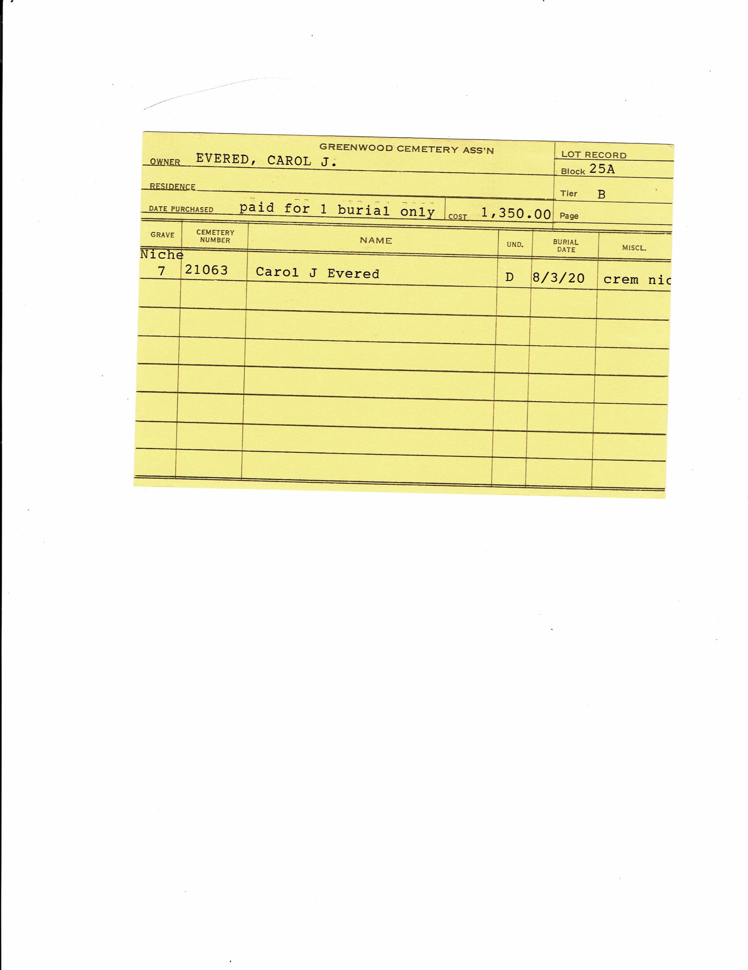 Block 25A, Tier Tier B, Lot Unit 1, Grave Niche 7