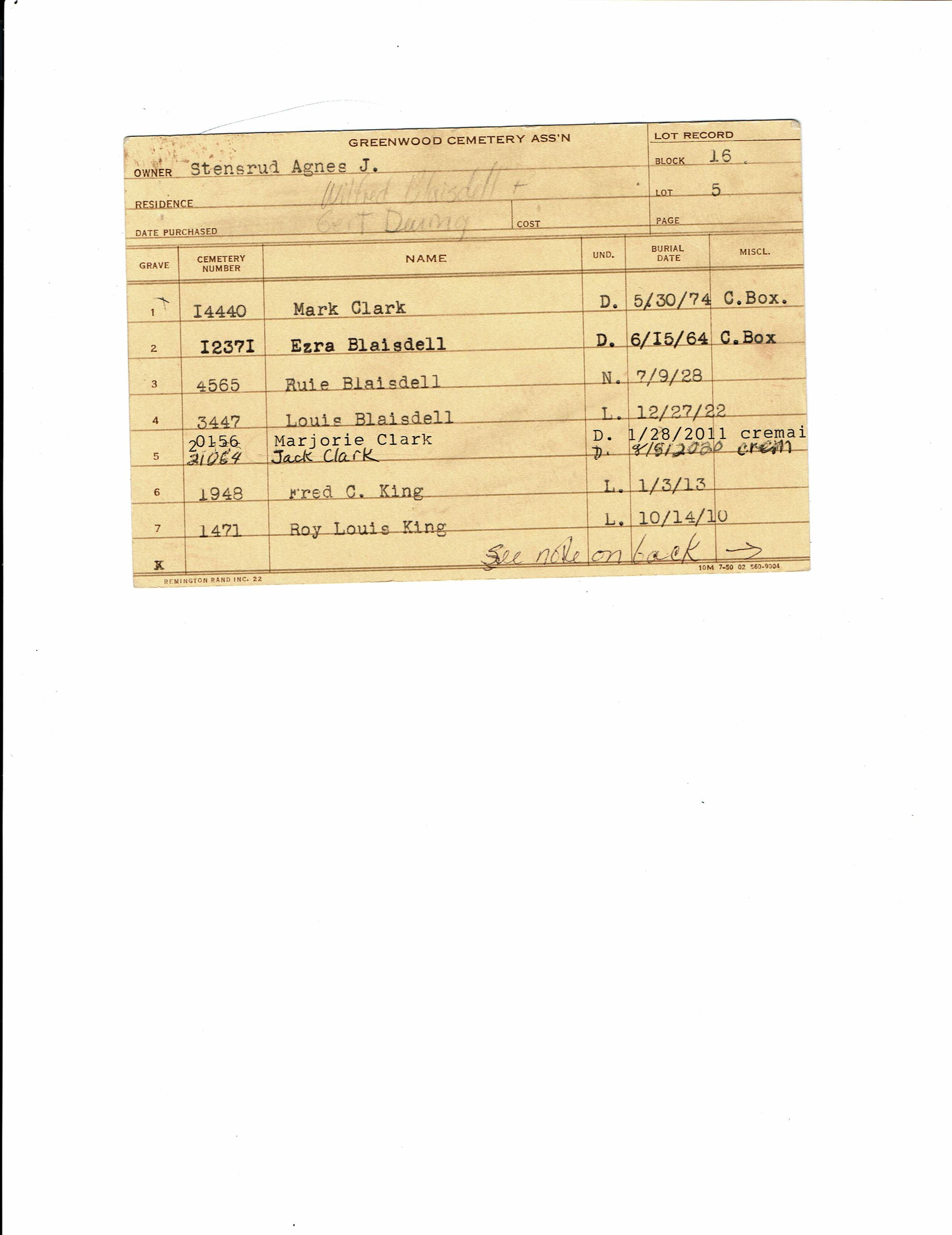 Block 16, Lot 5, Grave 5
