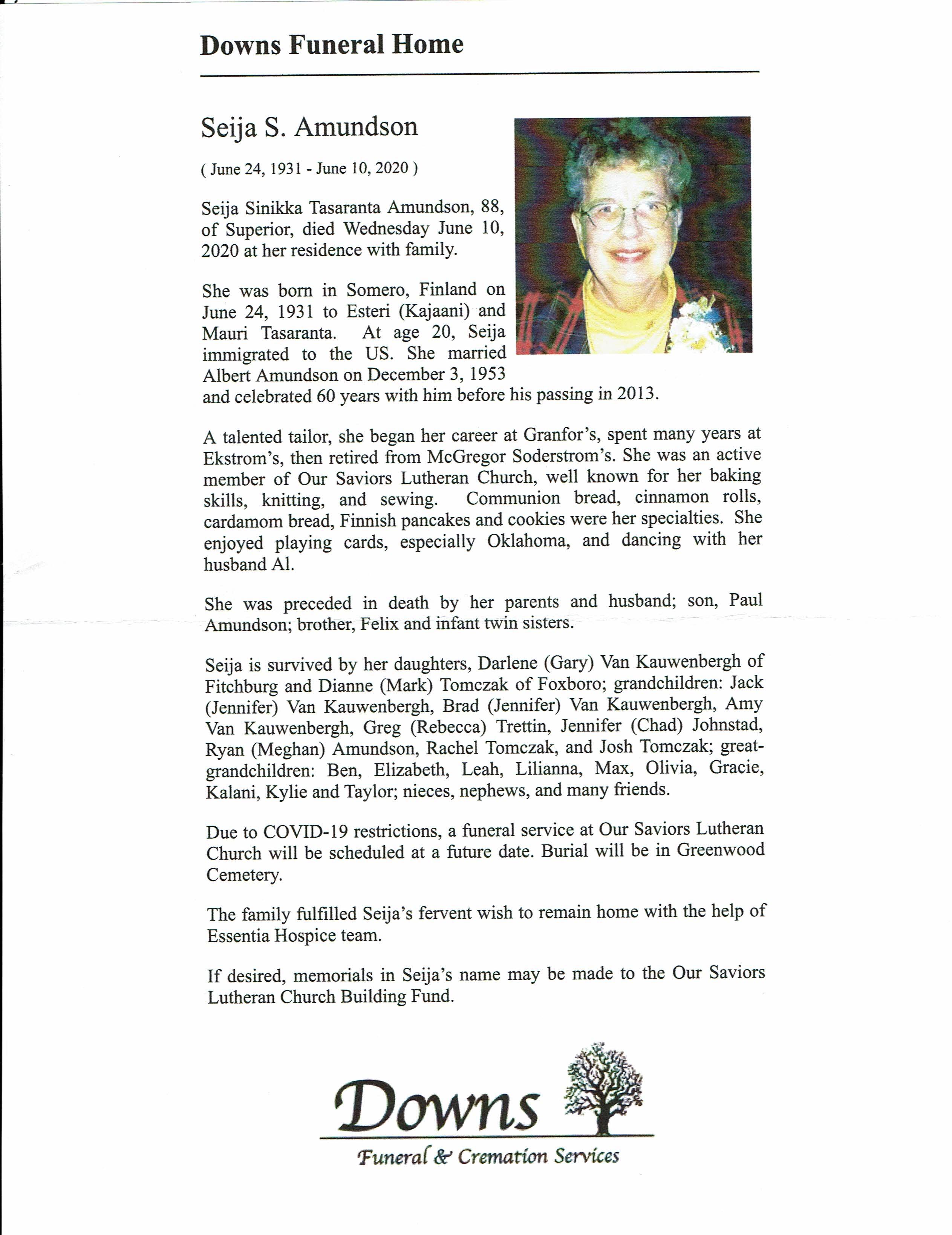 Seija Sinikka Tasaranta Amundson
