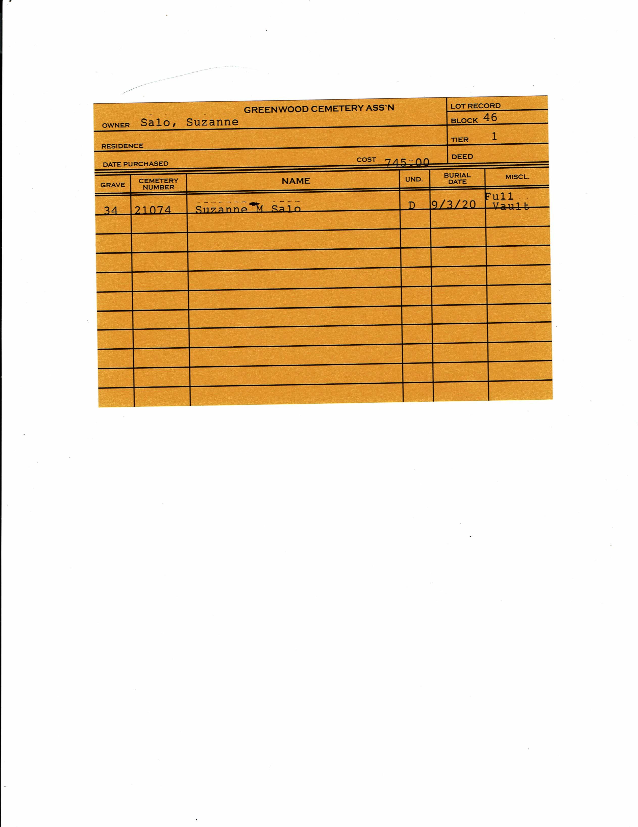 Block 46, Tier 1, Grave 34
