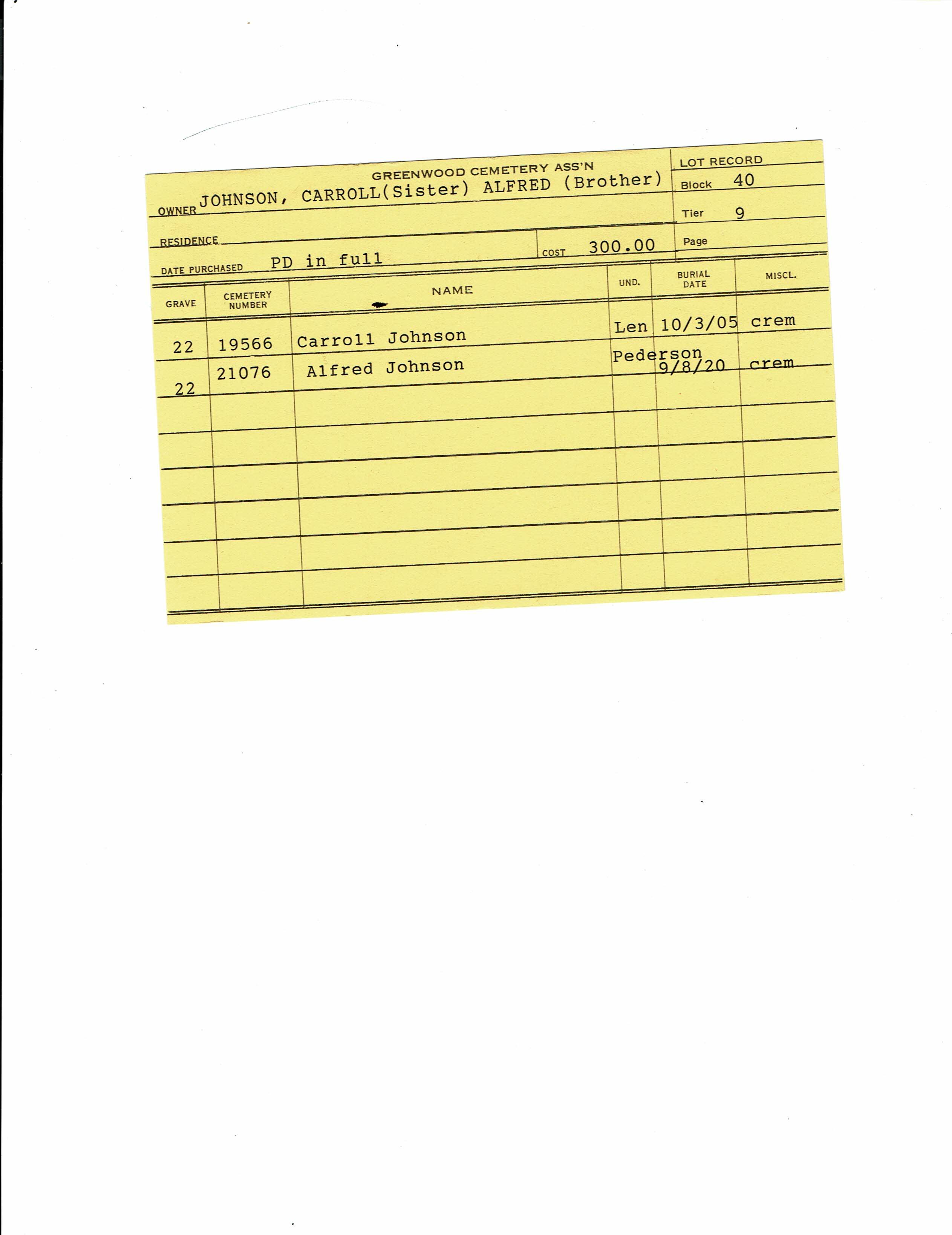 Block 40, Lot 9, Grave 22