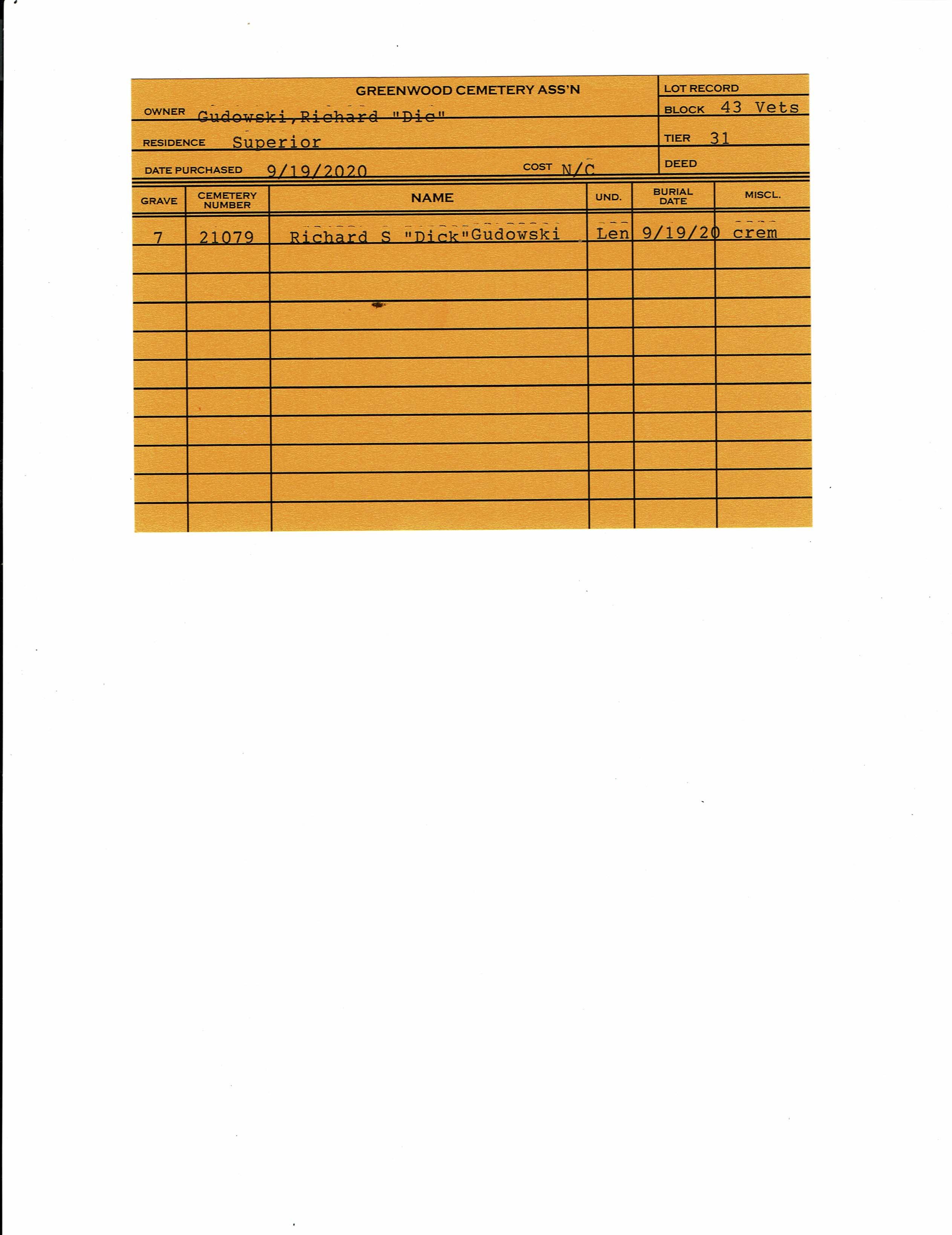 Block 43, Lot 31, Grave 7