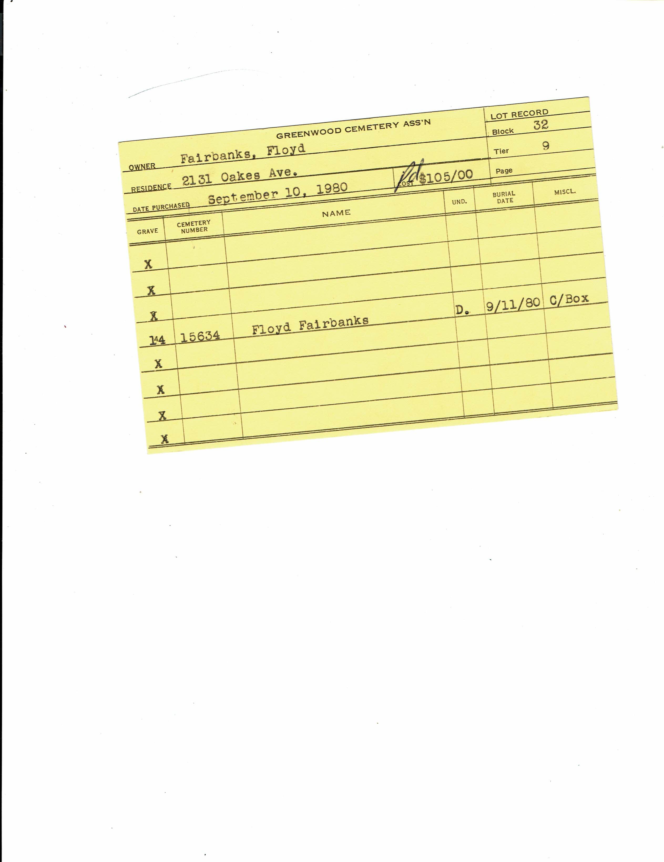 Buried Sep 7, 1980