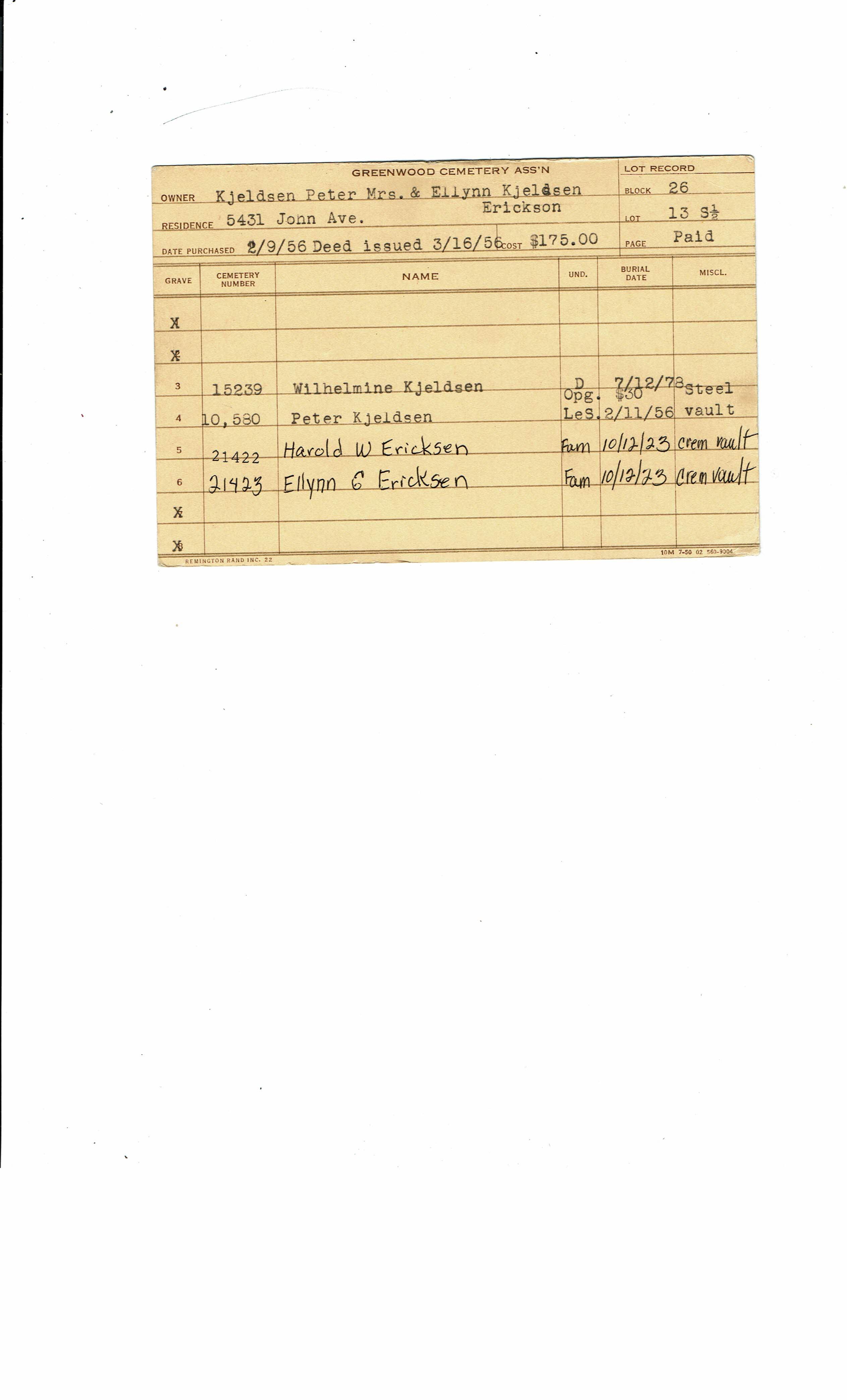 Greenwood Cemetery Association Online Records