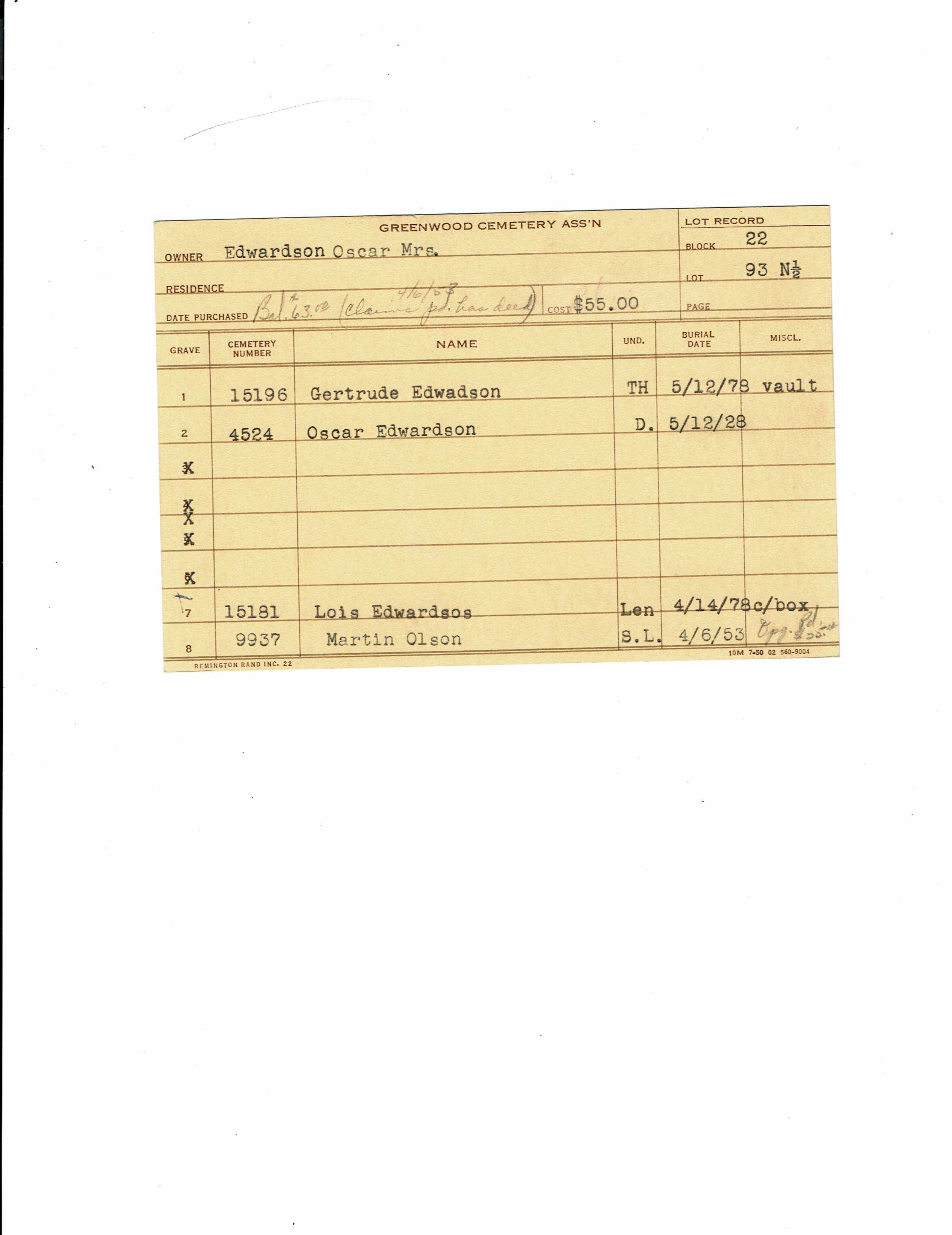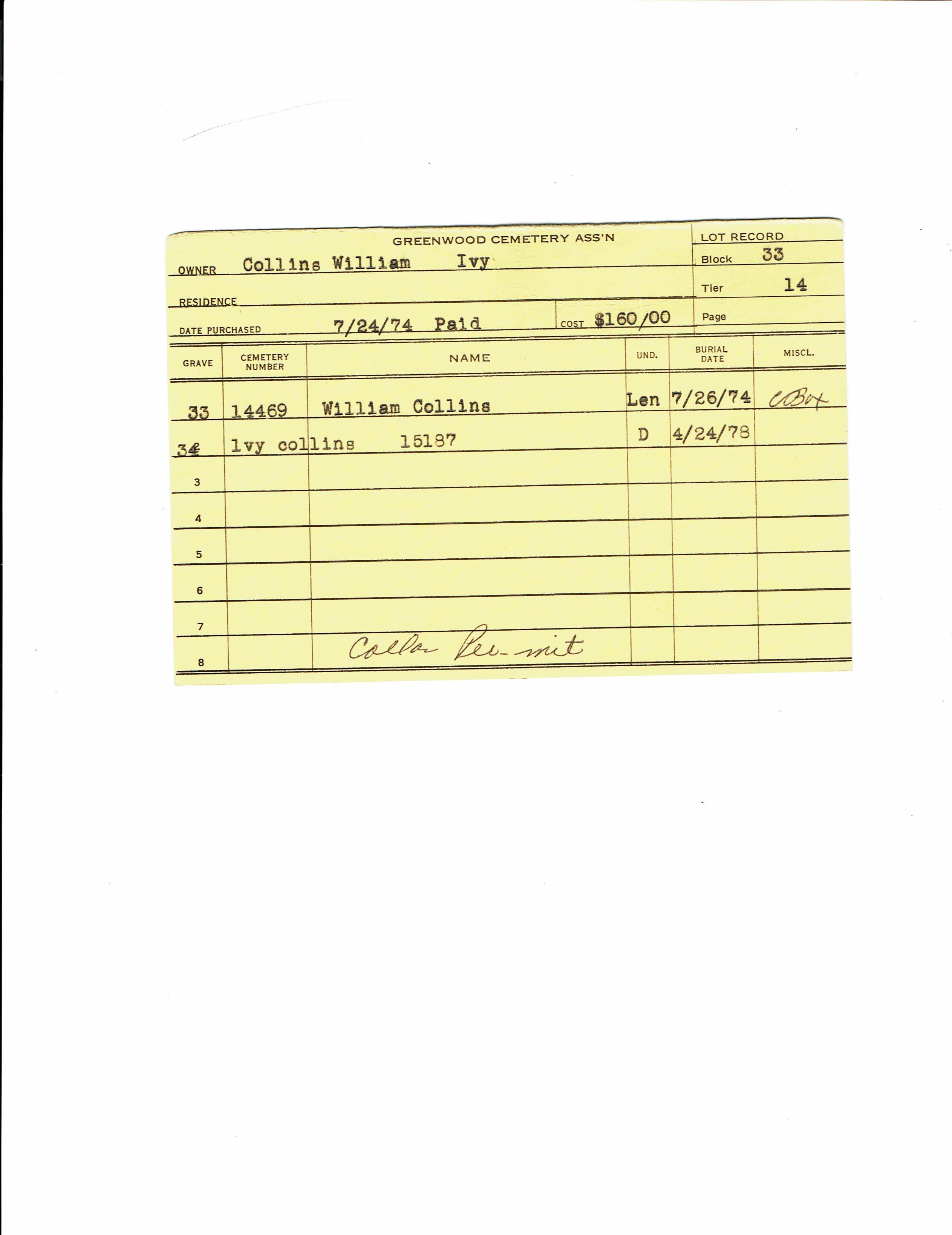 Greenwood Cemetery Association Online Records