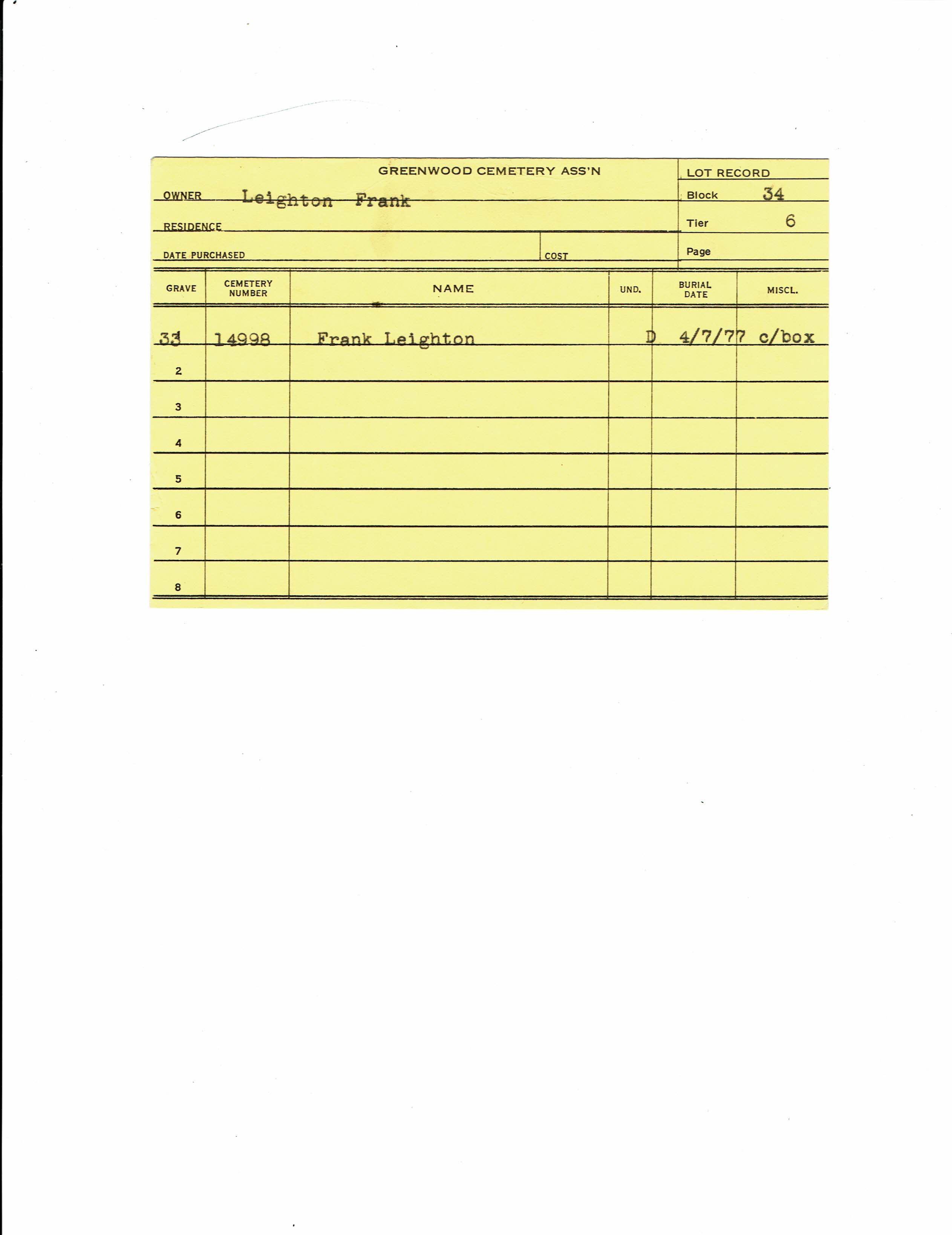 Block 34, Tier 6, Grave 33