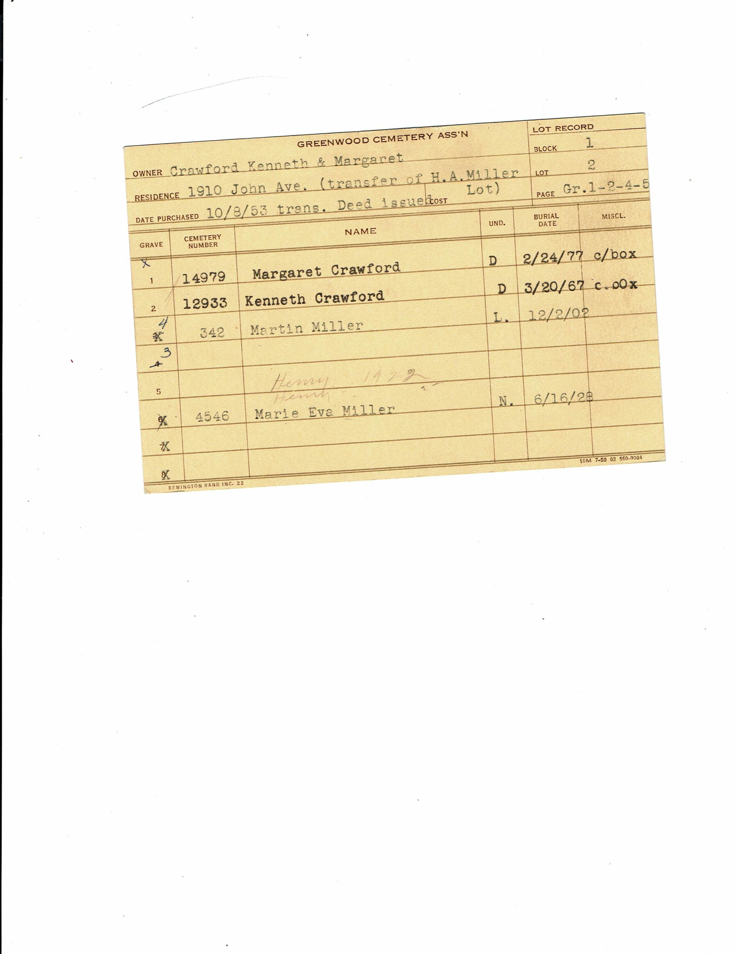 Greenwood Cemetery Association Online Records