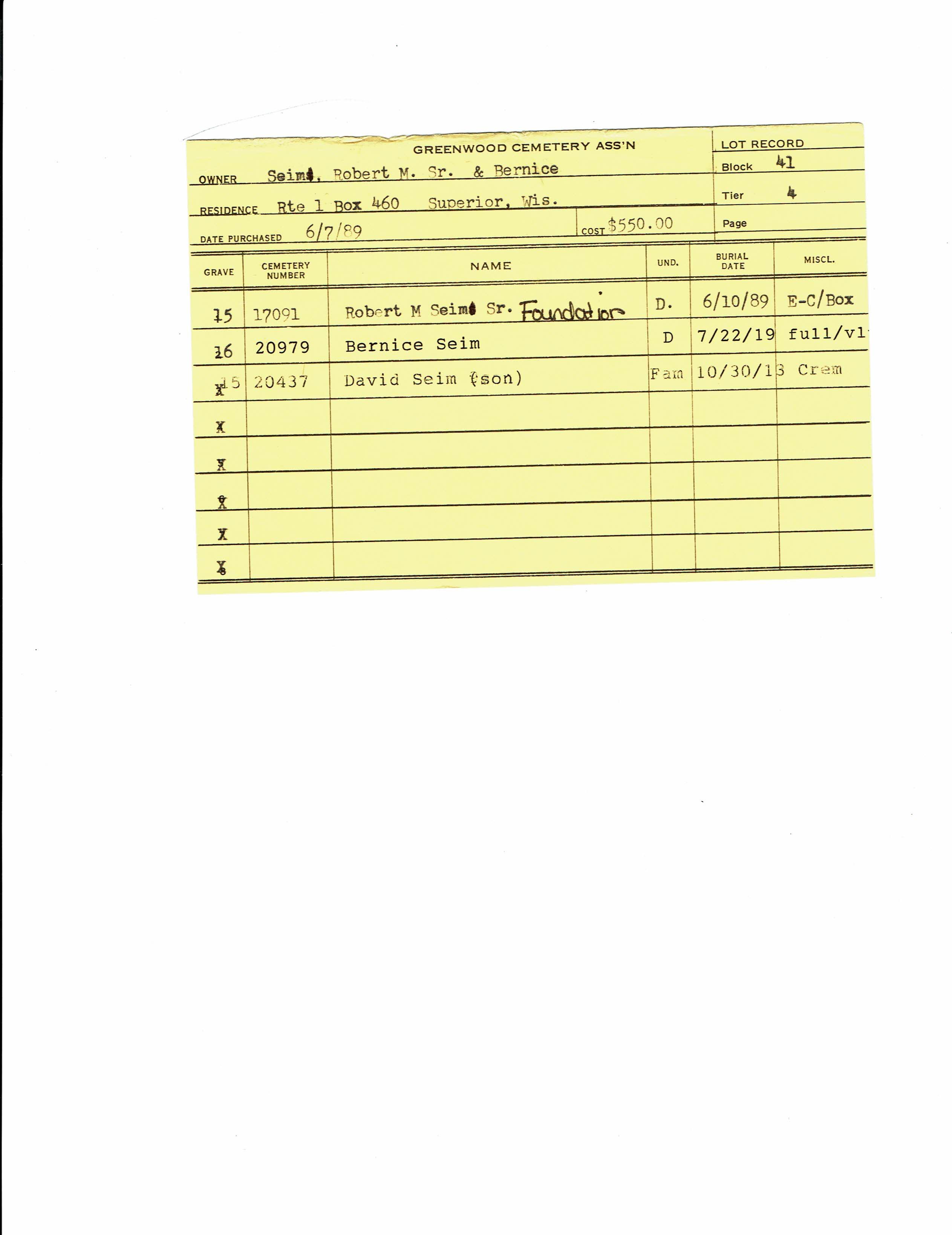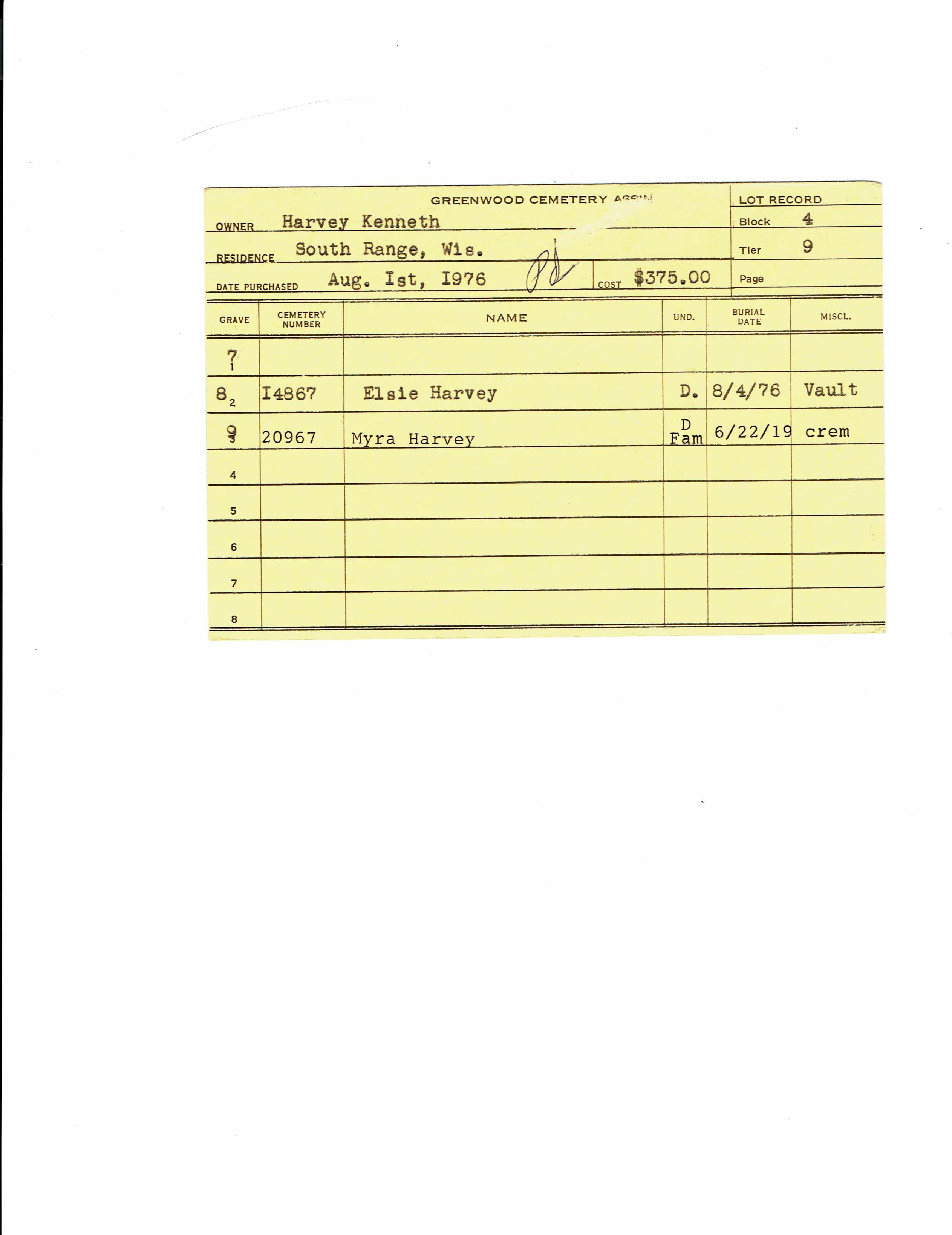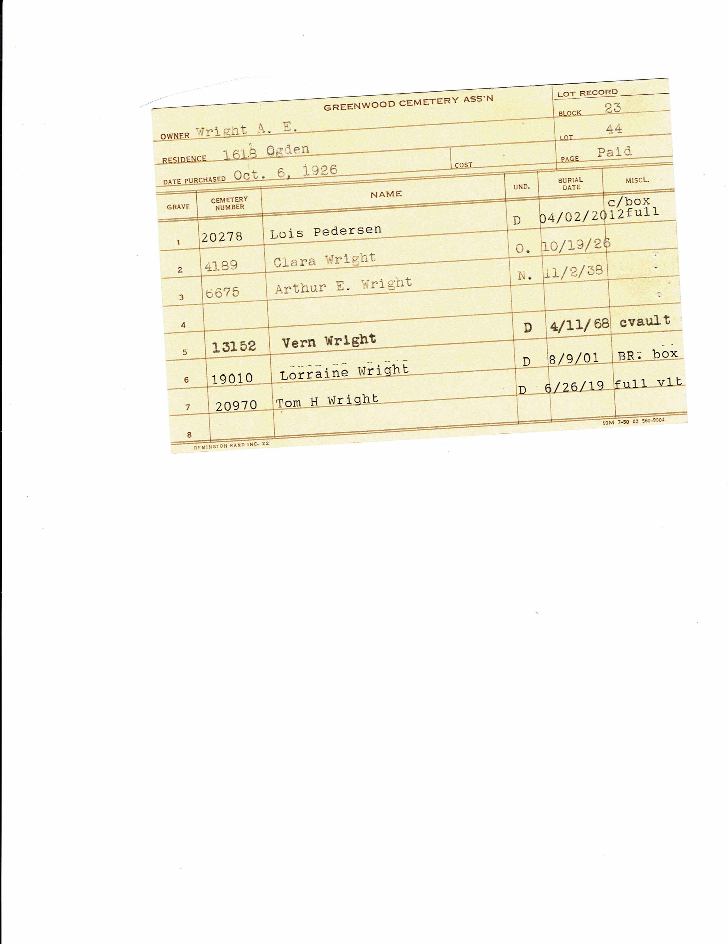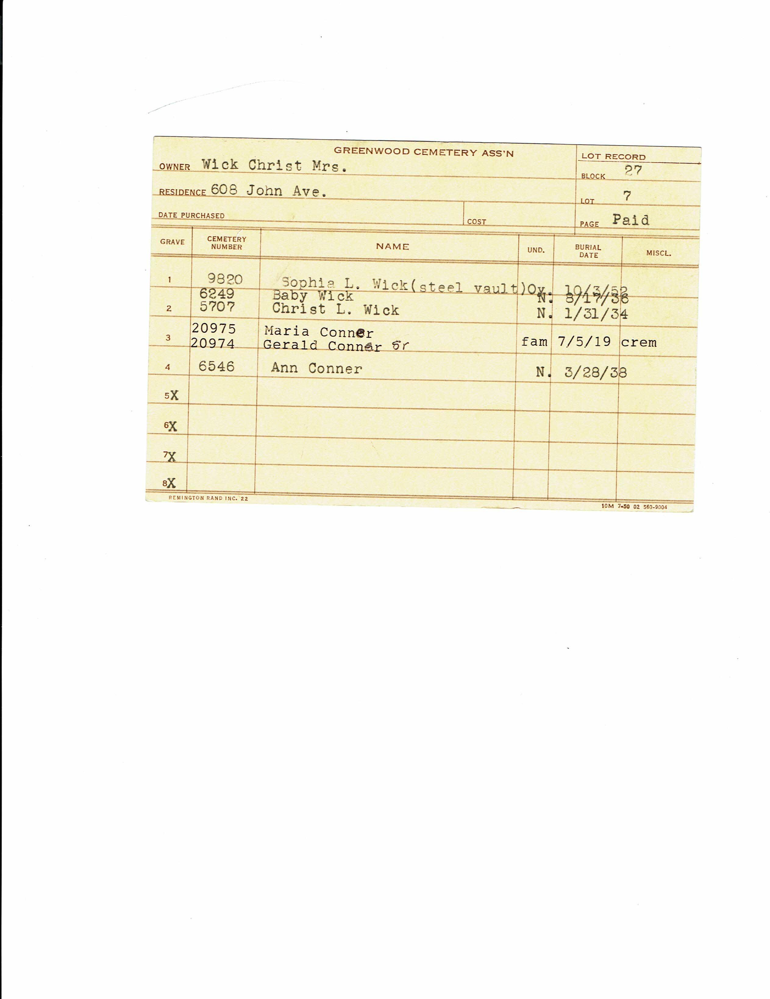 Block 25A, Tier Row D, Lot Unit 2, Grave 7