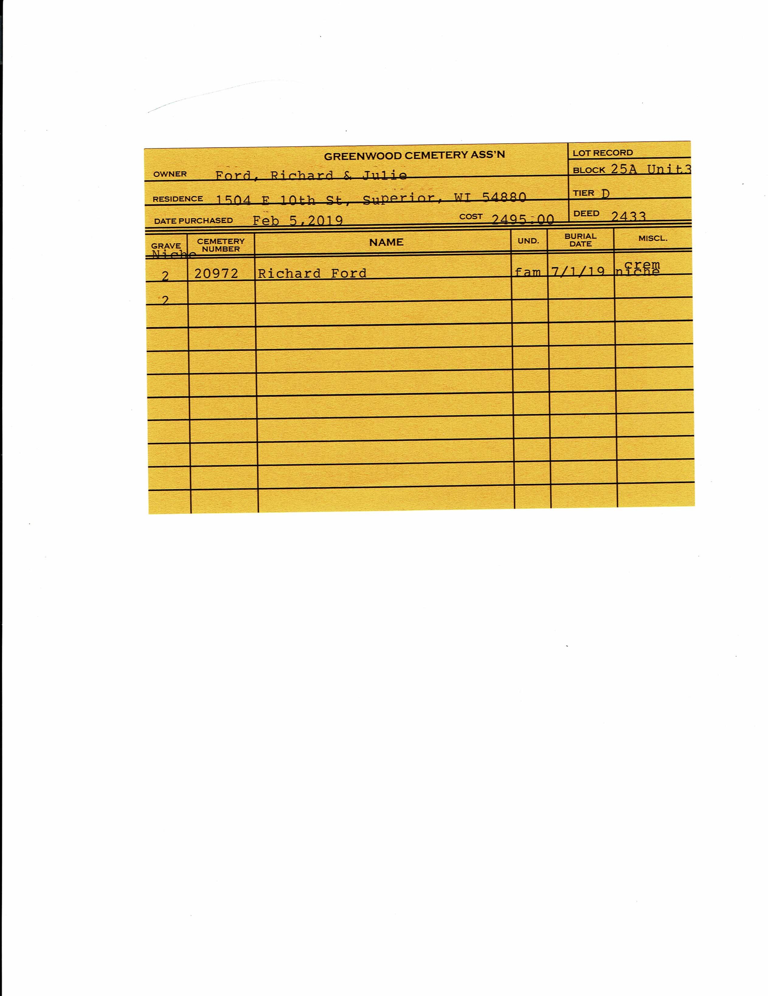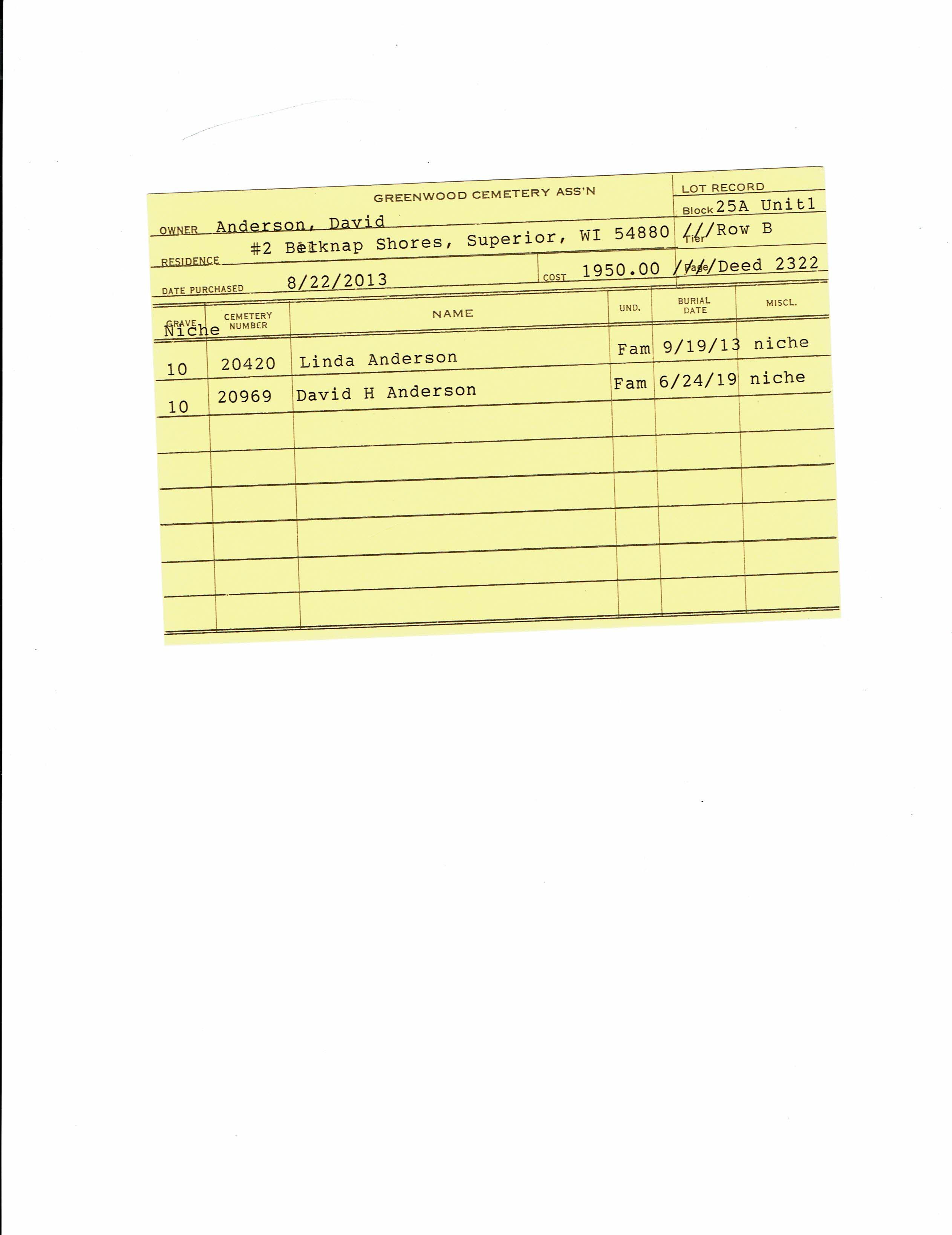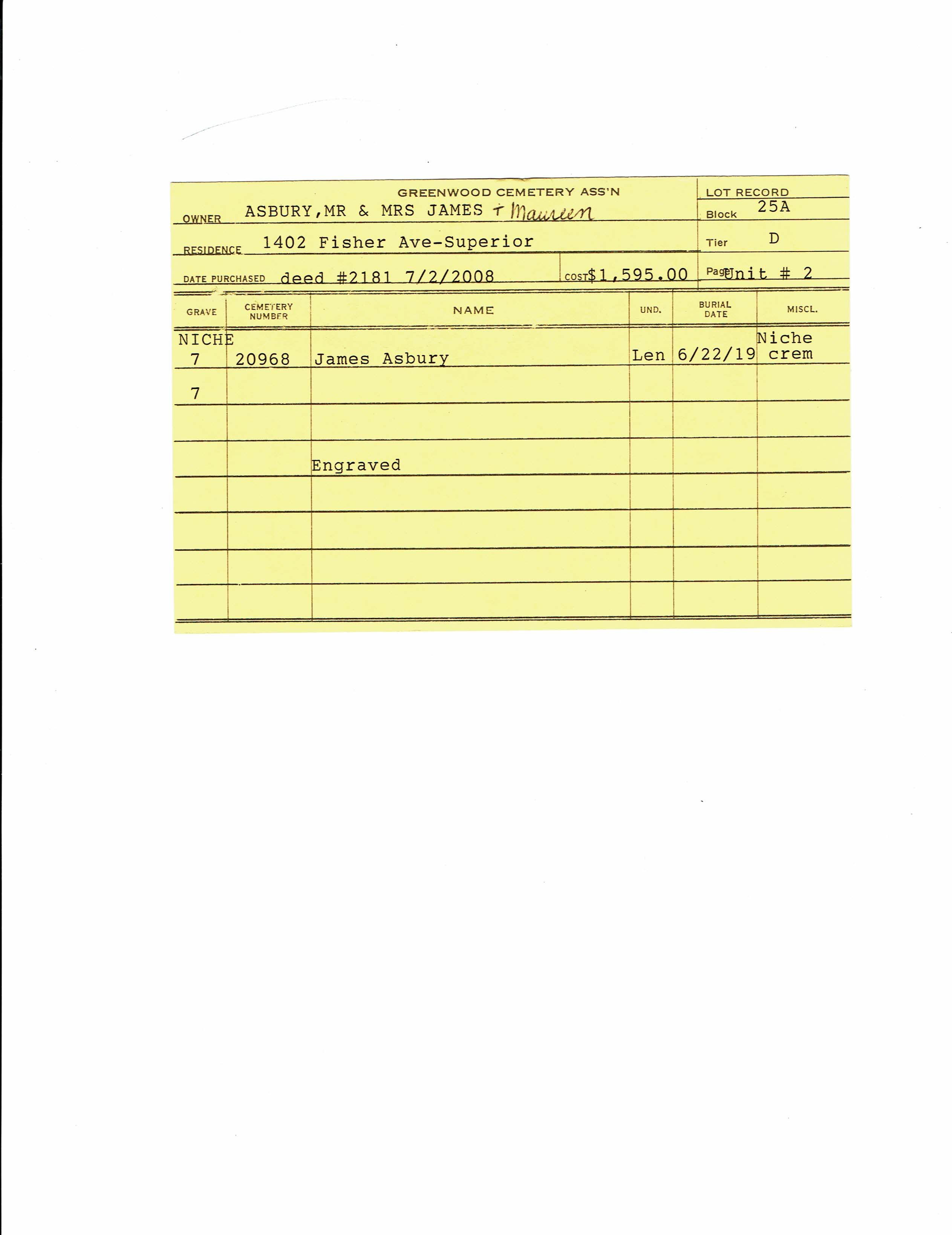 Block 25A, Tier Row A, Lot Unit 2, Grave Niche 1