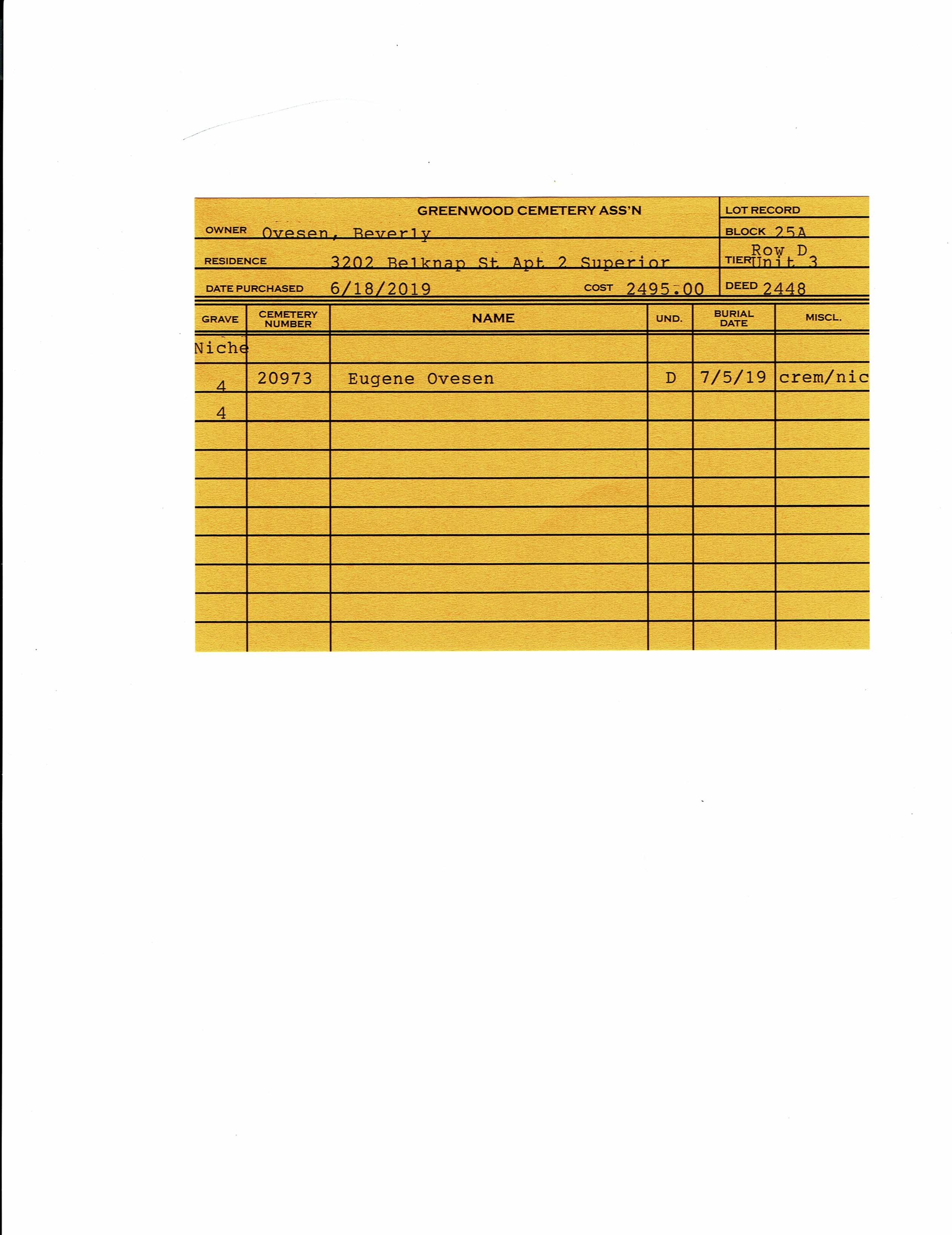 Block 25A, Tier Row D, Lot Unit 3, Grave Niche 2